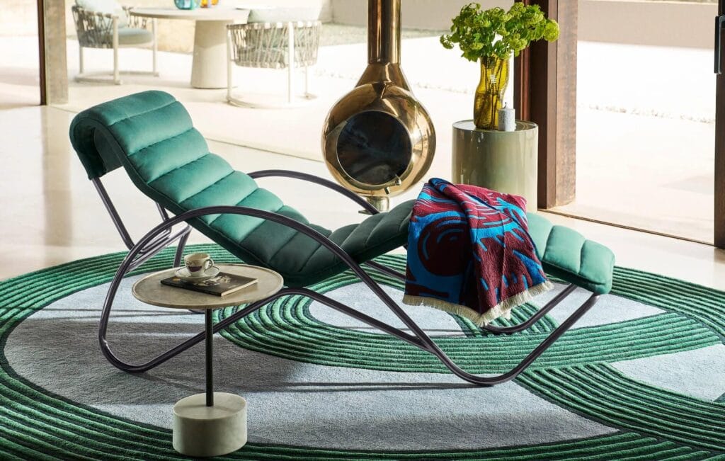 Charlotte Perriand designed Chaise longue Indochine in November of 1943, during her term as Director of Crafts in Vietnam. Confined to bed toward the end of her pregnancy, she designed a chaise longue with armrests that allowed her to continue to read, write and design. The first specimen was in rattan, due to the impossibility of finding steel because of the Pacific War. In collaboration with Pernette Perriand-Barsac, Cassina recoups the original intuition of the pioneer of modernity and produces Chaise longue Indochine in painted tubular metal. In a crescendo of lines, three curved segments joined by fasteners intersect, designing the aerodynamic silhouette of this piece of furniture where the armrests are the natural continuation of the base. The chaise longue’s cradle is equipped with elastic webbing that provides support to the seat, optimising its cosiness. A topper with removable upholstery envelops the structure. Its soft padding is made of recycled PET fibre, punctuated by a quilted motif, stitched from edge to edge.Charlotte Perriand entwarf Chaise longue Indochine im November 1943 während ihres Aufenthalts in Vietnam, wo sie verschiedene Aktivitäten zur Ausbildung von Kunsthandwerkern koordinierte. Da sie während der letzten Monate ihrer Schwangerschaft ans Bett gefesselt war, entwarf sie eine Chaiselongue mit Armlehnen, um auch weiterhin zu lesen, zu schreiben und zu entwerfen. Das erste Exemplar bestand aus Rattan, da Stahl wegen des Pazifikkriegs Mangelware war. In Zusammenarbeit mit Pernette Perriand-Barsac hat Cassina die ursprüngliche Intuition der Pionierin der Moderne wieder aufgegriffen und Chaise longue Indochine aus lackiertem Hohlprofil aus Metall gefertigt. In einem Crescendo der Linien überschneiden sich drei gebogene Segmente, die über Befestigungselemente miteinander verbunden sind, und zeichnen eine aerodynamische Silhouette dieses Möbelstücks, bei dem die Armlehnen die natürliche Fortführung des Gestells sind. Die Liegefläche der Chaiselongue verfügt über elastische Riemen, die die Sitzfläche stützen und den Sitzkomfort erhöhen. Eine abziehbar Auflage mit einer weichen Polsterung aus recycelten PET-Fasern umhüllt das Gestell, skandiert durch die Steppnaht, die von Rand zu Rand führt.
