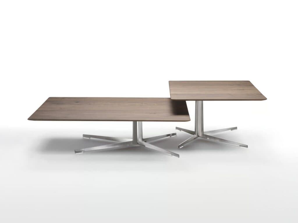 Eine große Familie von Tischen, Beistelltischen und Behältern, die sich durch ihre enorme Vielseitigkeit auszeichnet, wahrer Ausdruck des “good design” das die gesamte Flexform Kollektion prägt. Die Reinheit des Designs, gemeinsam mit der praktischen Verwendung, sowie der reichen Auswahl von verschiedenen Ausfertigungen und Größen machen die Beistelltische Fly zu extrem vielseitigen Produkten. Der originelle Metallfuß der Beistelltische Fly ist satiniert, verchromt, brüniert, schwarz verchromt oder champagnerfarbig erhältlich, während die Platte – vorgeschlagen in runder, ovaler, quadratischer und rechteckiger Variante in vielen, verschiedenen Größen – entweder in den Ausführungen mit Nussbaum Canaletto und Esche in zahlreichen Nuancen vorgesehen ist, oder aber in verschiedenen Marmorsorten.