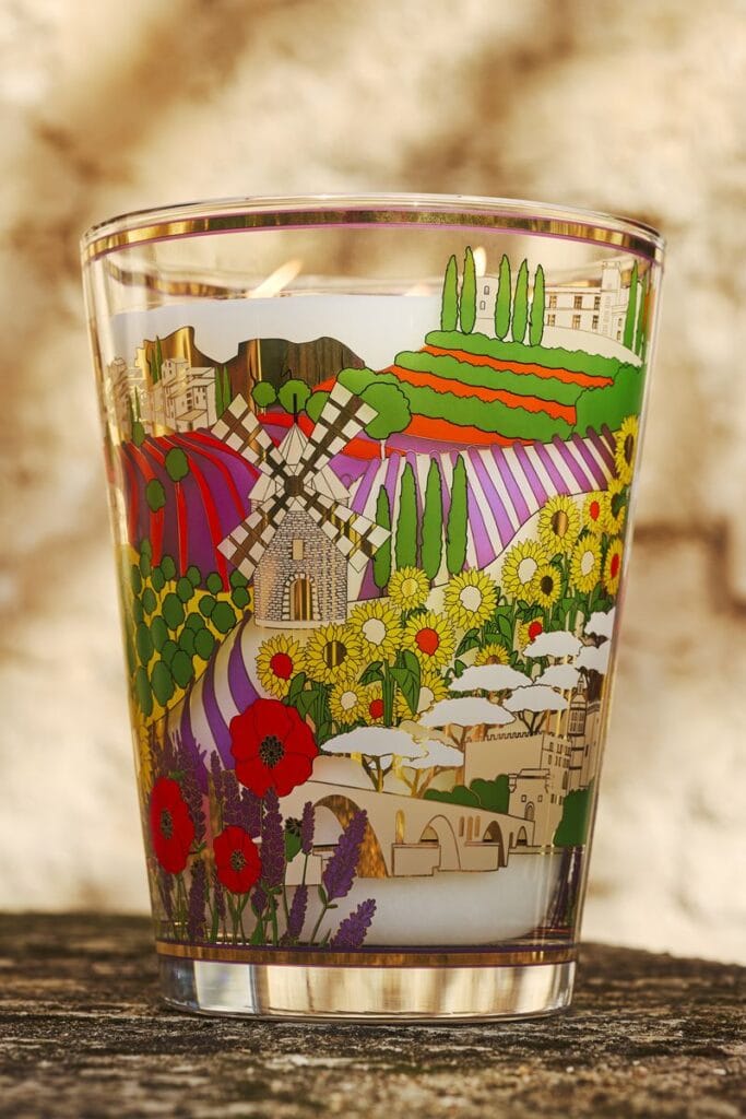 Das Dekor, das als poetische Kartografie konzipiert ist, vereint symbolträchtige Orte. Darunter befinden sich die Baux-de-Provence, die auf ihrem Felsvorsprung thronen, die Abtei von Sénanque, eingebettet zwischen Lavendelfeldern und Zypressen, lichtdurchflutete provenzalische Bauernhäuser, die Brücke von Avignon und die eleganten Linien des Château de Lourmarin. Alles reagiert, überlagert sich und erstreckt sich wie die Seiten eines Reisetagebuchs, in dem jede Seite eine zu besuchende Etappe und eine einzufangende Emotion ist.