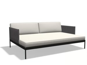 Die Sofas BASKET werden mit rauchfarbener Struktur und grauem Riemen oder mit milchiger Struktur und sandigem Riemen angeboten, während die Couchtische mit Steinplatten ein äußerst vielseitiges Element sind, das sich mit jeder anderen Kollektion harmonisch kombinieren lässt. Die einzelnen rückenfreien Module können als bequeme Sitzbänke oder Poufs verwendet werden.