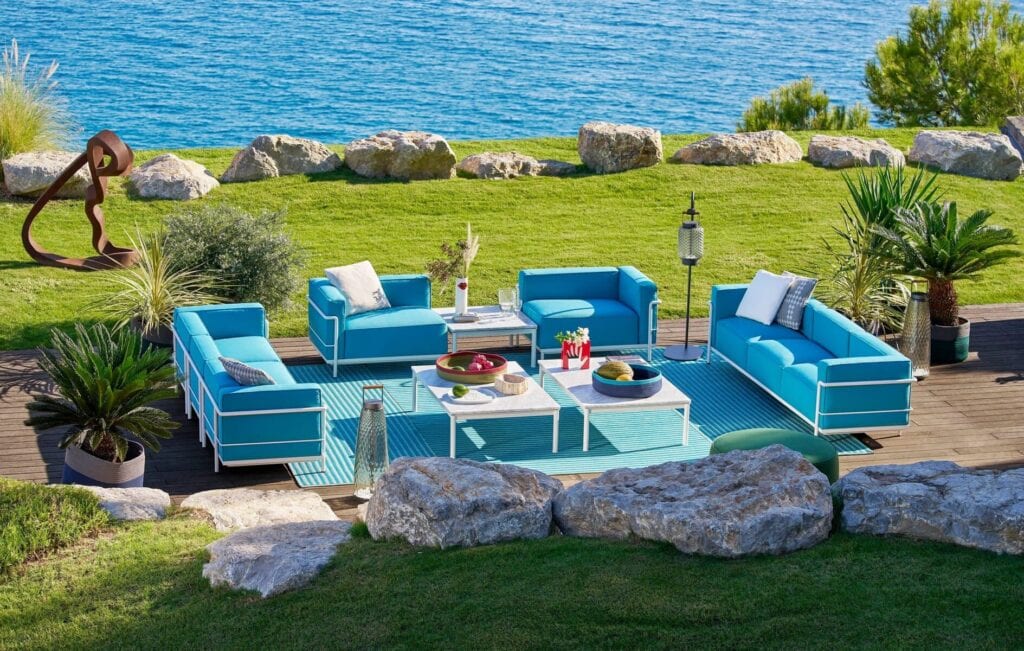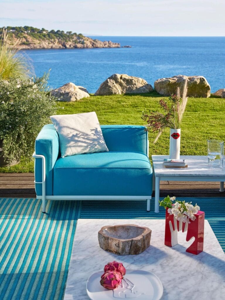 Der vielseitige, einladende und elegante 3 FAUTEUIL GRAND CONFORT, Méridienne, OUTDOOR vervollständigt diese emblematische Kollektion, um raffinierte Atmosphären zu schaffen, die Design per Definition zelebrieren. Der Méridienne, ein Sessel mit nur einer einzigen Armlehne, der mit den bezauberndsten Musen der Kunst assoziiert wird, ist ein informelles Möbelstück, das zum entspannten Ausstrecken und Entspannen einlädt. Um den ästhetischen Charakter der gesamten Kollektion zu unterstreichen, bietet die berühmte Metallrohrstruktur, die in den Farbtönen Terracotta, Taupe, Elfenbein und Grün erhältlich ist, Platz für weiche Kissen, die mit einer neuen Auswahl an Texturen und Nuancen bezogen sind, die an mediterrane Atmosphären erinnern.