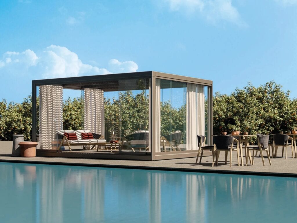 Die Kollektion Eivissa besteht aus einer Reihe von Strukturen aus pulverbeschichtetem Aluminium, die dank ihrer verschiedenen Grössen, Farben, Dächer und Böden eine grosse Vielfalt an Konfigurationen bieten. Die Designmerkmale der Pfosten, Sparren und Ecken sowie die grosse Auswahl an Bauteilen und feinen Details machen sie zu einem sehr charakteristischen und vielseitigen Projekt, das völlige Freiheit bei der Personalisierung bietet.