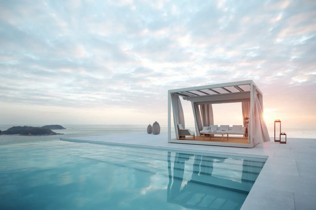 in der weichen, asymmetrischen Gestaltung der Aluminiumstruktur, in der Atmosphäre des Wohlbefindens, die man im Inneren empfindet, in der grossen Vielfalt an Grössen, Farben, Verkleidungen, Böden, Paneelen, Vorhängen, Geflechten und Fransen, die zu massgeschneiderten Lösungen führen, die jedes Mal anders sind. Eivissa ist eine besondere Art, den Aussenbereich zu erleben. Ein Projekt, das sich Kokons des Wohlbefindens vorstellt, Räume, die geschützt und einladend sind und gleichzeitig in völligem Kontakt mit der Umgebung stehen.