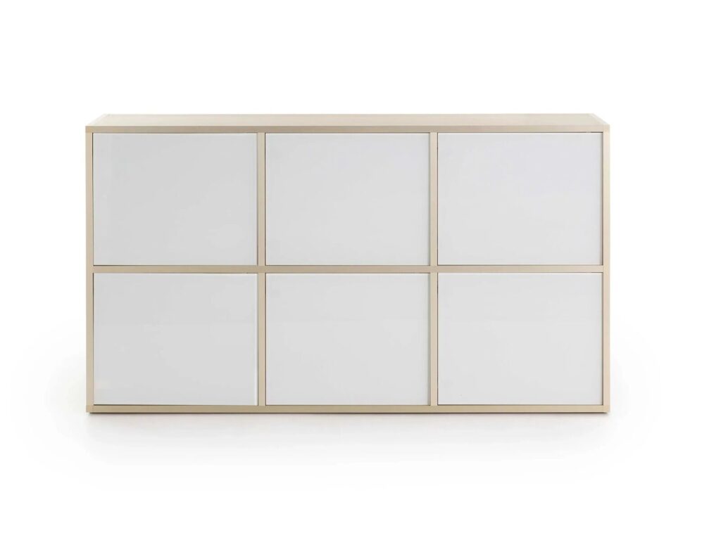 GBModular demonstriert 2023 die grossen Ausdrucksmöglichkeiten seines Konstruktionssystems und nimmt Stücke in seine Kollektion auf, die sich für die Gestaltung kompletter Umgebungen eignen: eine Liege, einen Sessel, ein Zweisitzer-Sofa, einen niedrigen Tisch, einen Spiegel, ein Bücherregal mit und ohne Türen und ein Sideboard. Die beiden letztgenannten Modelle, das Bücherregal und das Sideboard, können mit Türen aus Iroko-Holz und gehärtetem Glas ausgestattet werden.