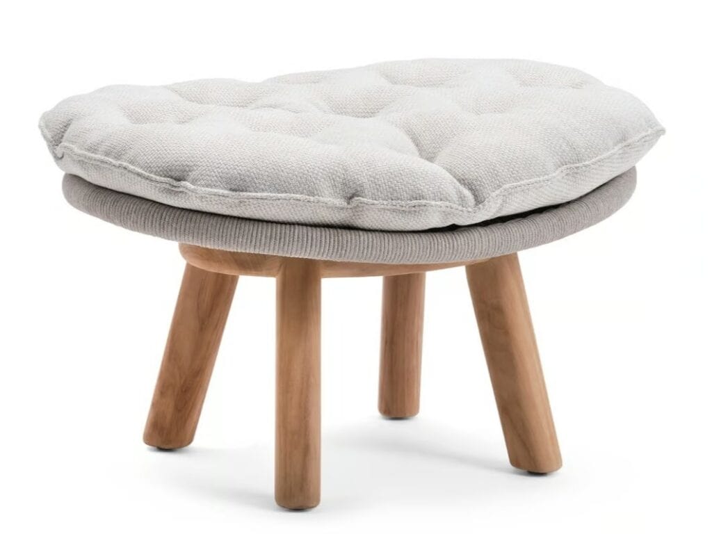 Sandua ist eine mit Stoff bezogene Fussbank für den Aussenbereich, die zur gleichnamigen Kollektion gehört.