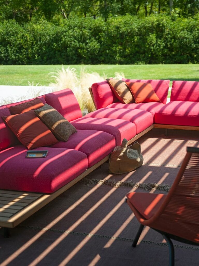 Fein proportioniert, einladend mit seinen weichen Outdoor-Kissen, harmonisch in den Profilen und mit einer breiten Farbpalette in den Bezügen, ist Philia ein Outdoor-Sofasystem von zeitlosem Charme.