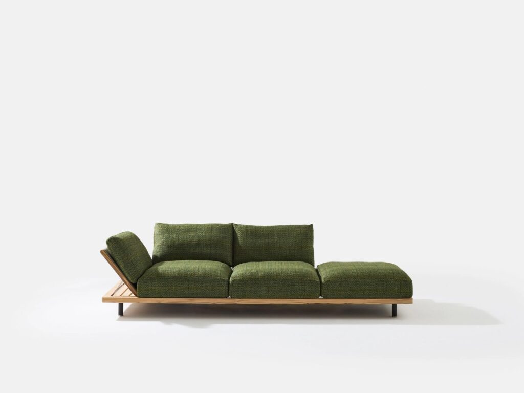 Die Rückenlehnen und Armlehnen von Philia sind leicht gepolstert und in drei Positionen verstellbar, was die möglichen Konfigurationen erhöht und Komfort. Die Armlehne kann auch als Rückenlehne oder Kopfstütze dienen: formale Vielseitigkeit, Entspannung und großer Komfort.