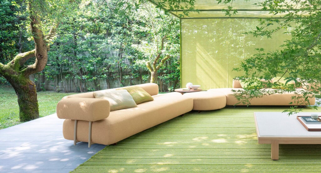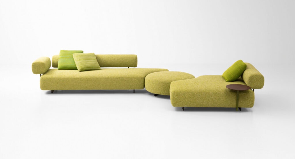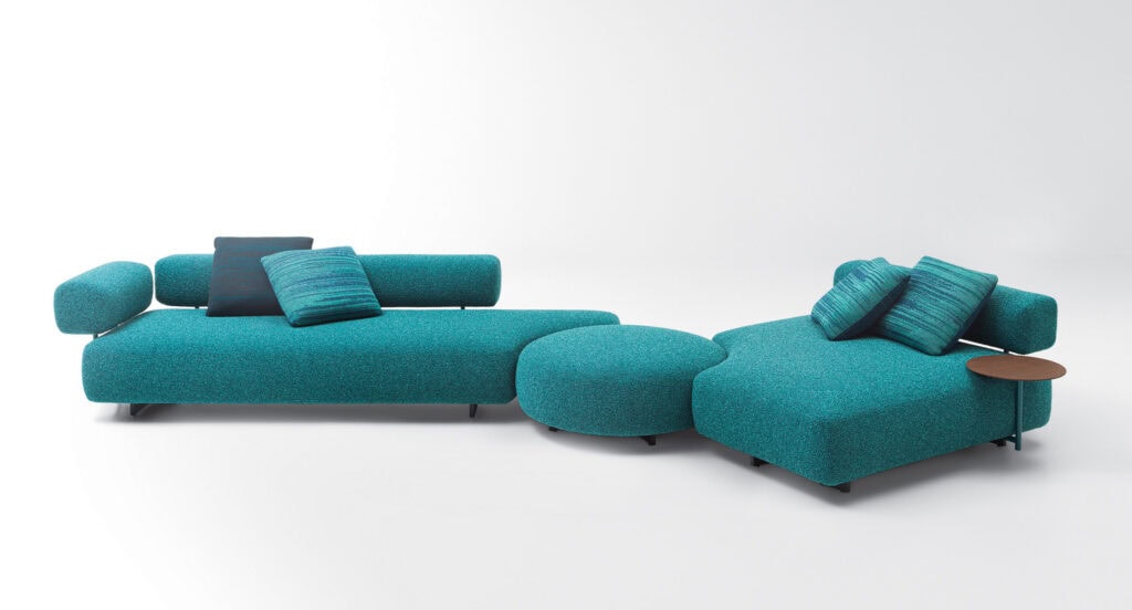Das nicht geformte Sitzelement Code B236E kann stattdessen mit Rückenlehne, Armlehnen und/oder Beistelltischen ergänzt werden, um ein dreisitziges Sofa oder eine große Chaiselongue zu schaffen.