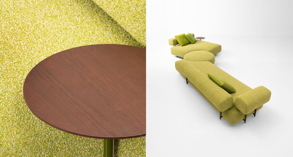 Es sind auch Beistelltische erhältlich, die mit den Sitzelementen verbunden werden können.