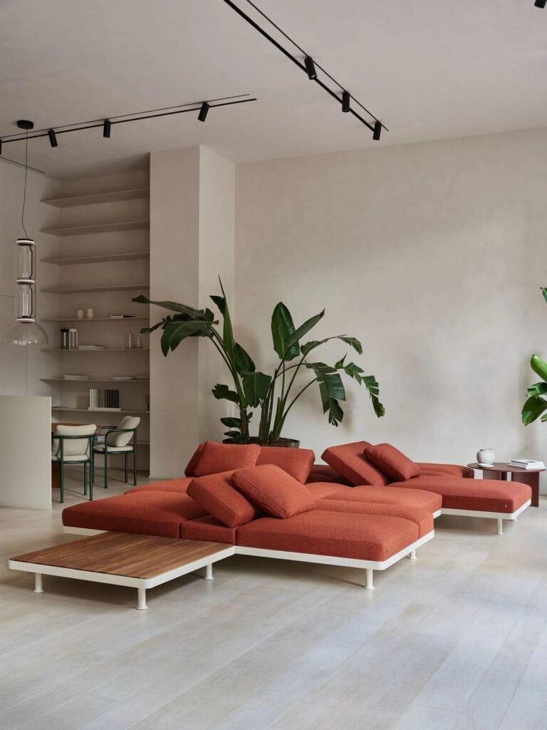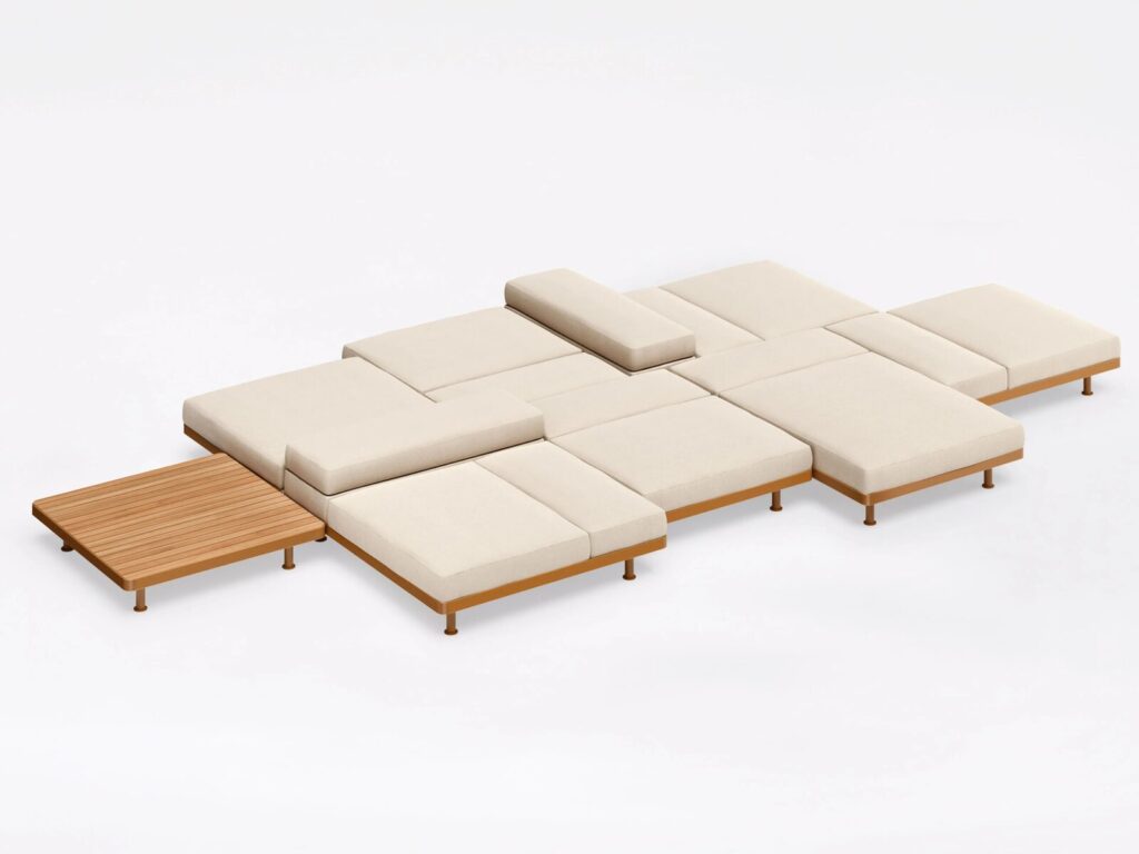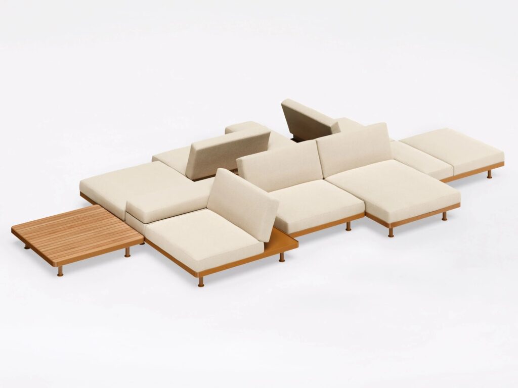 This new modular sofa system with reclining backrests and armrests redefines the concept of outdoor seating. An essential and functional design, it features an integrated, concealed mechanism within the cushions that allows the backrest or armrest to be adjusted smoothly and effortlessly, adapting the sofa to a variety of settings—from social gatherings to intimate moments of relaxation. The sofa can transform from a linear configuration into a welcoming island by adding or removing elements, optimizing space and responding to ever-evolving needs. More than just a product, it is a flexible, dynamic system where technology serves comfort and creative freedom.