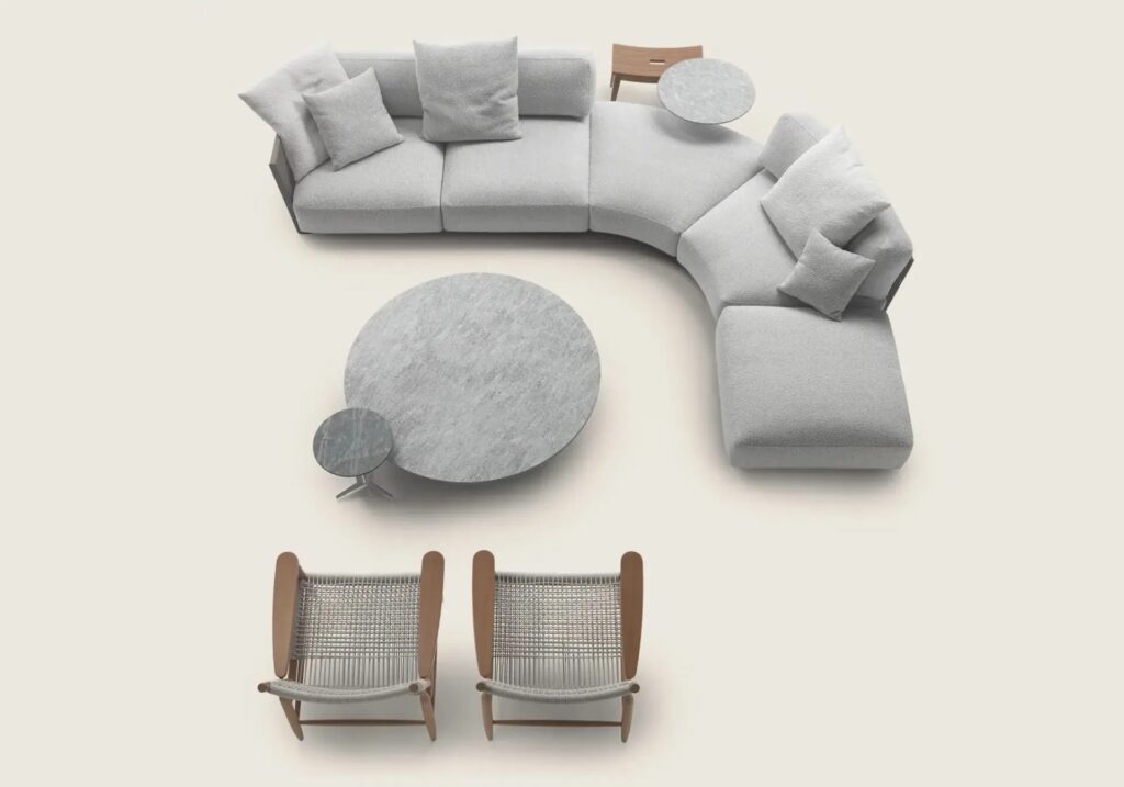The core themes of flexibility in composition and a high degree of customization, combined with passionate research into materials that ensure high performance in outdoor environments, form the foundation of the Vulcano sofa design.