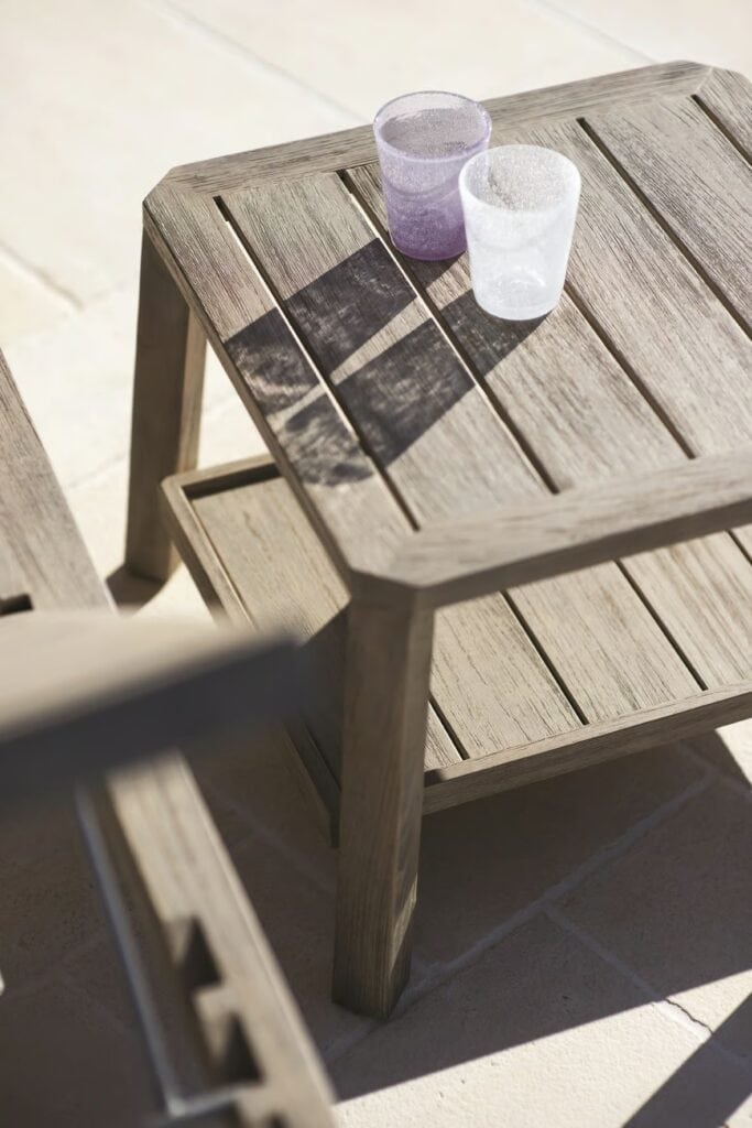 Garten-Beistelltisch aus Holz mit Tablett | Ethimo | Petit club