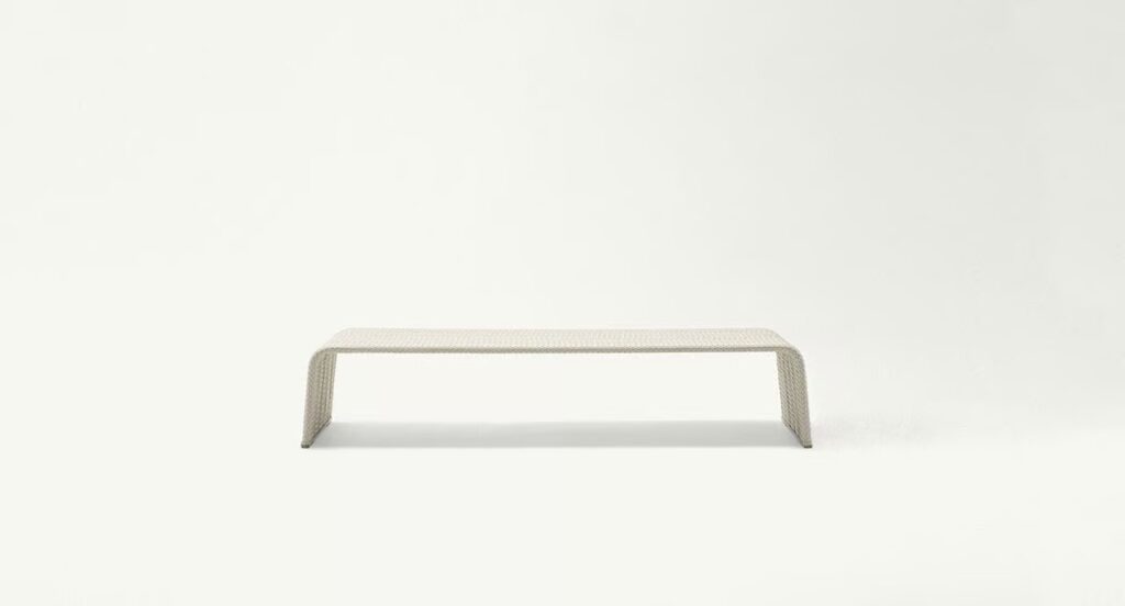 Frame ist eine Serie, die aus modularen Sofas, Podesten, Sesseln, Stühlen, Bänken und Beistelltischen besteht, die aus Aluminiumprofilen bestehen, die mit einem Twiggy-, Rope- oder Aquatech-Geflecht bespannt sind, exklusiven Garnen, die von Paola Lenti für den Einsatz im Freien entworfen und hergestellt werden. Je nach Art des verwendeten Garns kann das Geflecht einfarbig, zweifarbig oder mehrfarbig sein. Die Frame-Sitzmöbel werden durch Matratzen und zusätzliche Kissen ergänzt, die mit den exklusiven Outdoor-Stoffen der Paola Lenti Kollektion bezogen sind.