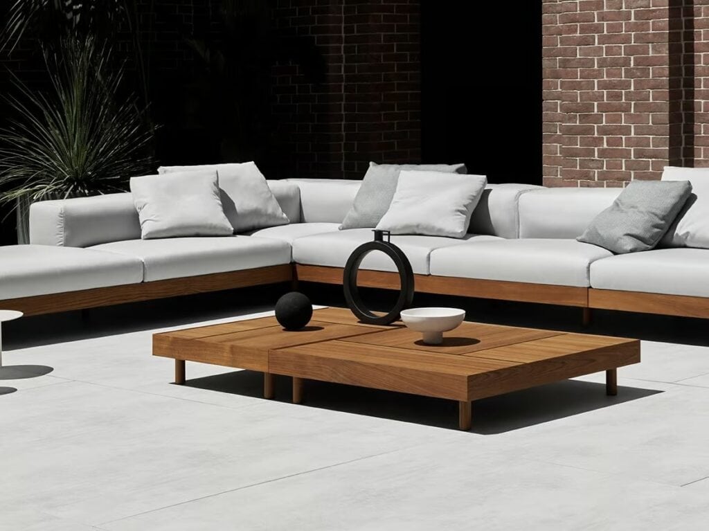 Kasbah, Couchtische in den Grössen 70x100cm und 100x100cm, bestehend aus einem Gestell aus massivem Burma Teakholz 90x35mm, das mit Pflanzenöl behandelt und mit wasserabweisenden Eigenschaften versehen ist.