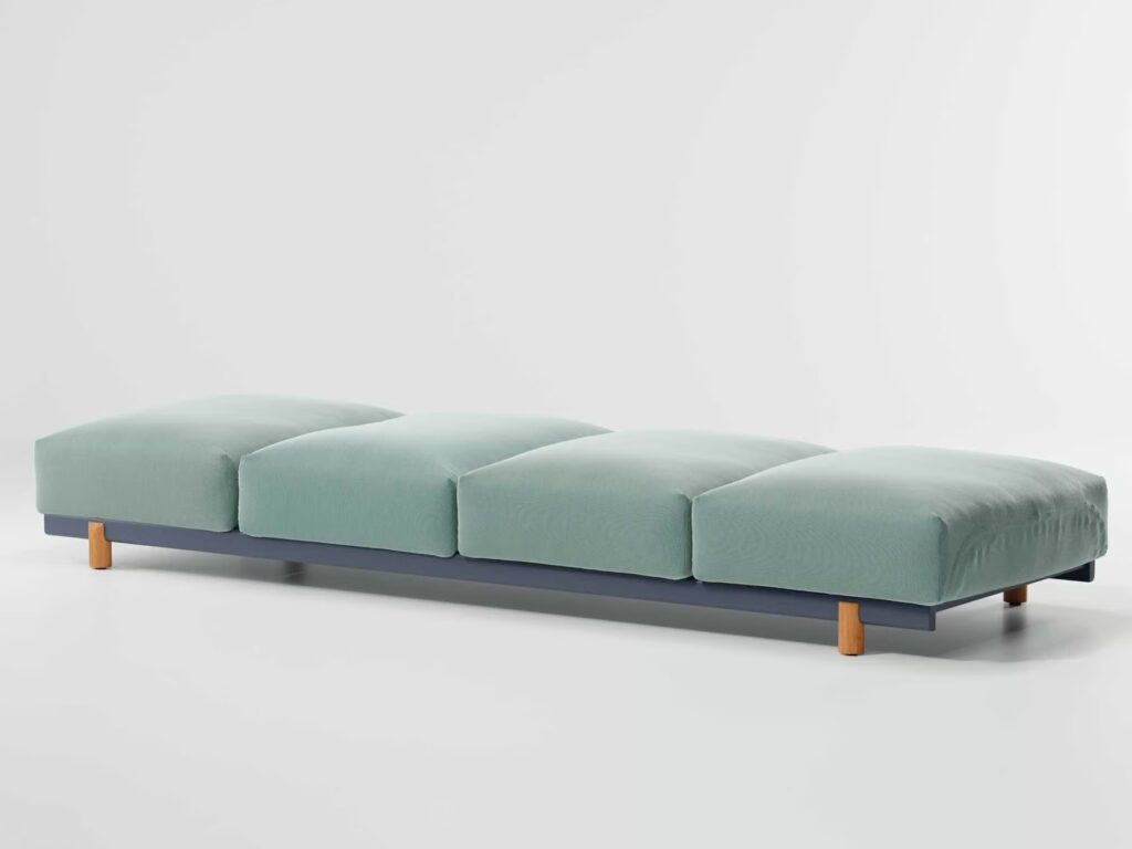 „Molo, pier auf Englisch, jetée auf Französisch, embarcadero auf Spanisch oder Hafenmole auf Deutsch, ist eine Konstruktion am Ufer eines Ozeans, eines Meeres, eines Sees oder eines Flusses, die sich von der Oberfläche des Kontinents bis hin zum Wasser erstreckt. Es ist ein Ort des Festbindens für Boote, also eine Ruhepause vom Segeln und ein Rückzugsort vom Wellengang. Eine Rückkehr aufs Festland zu den Menschen. Deshalb ist Molo von Kettal ein Ort, um gute Gesellschaft zu genießen und sich zu entspannen.“