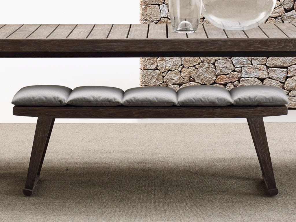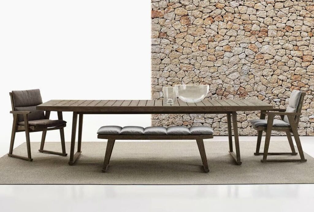 Gio, entworfen von Antonio Citterio, ist die neue Serie mit einem zeitgenössischen klassischen Akzent, die dem Leben im Freien gewidmet ist. Es handelt sich um eine komplette Reihe von Sofas, Endstücken, Chaiselongues, Liegen, Sesseln, Stühlen, Tischen und Ergänzungen, die aus massiven Teakholzstrukturen mit einer speziellen antikgrauen Oberflächenbehandlung entwickelt wurden, die dem Holz einen besonders lebendigen Aspekt und eine silbergraue Reflexionsqualität verleiht.