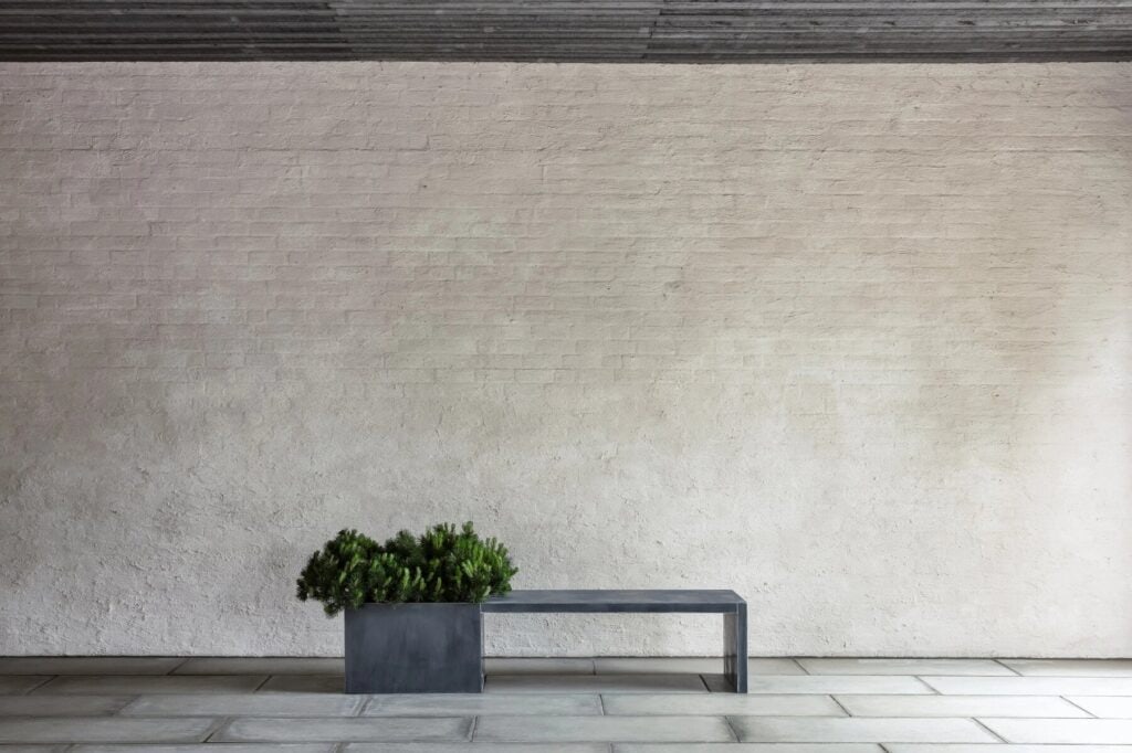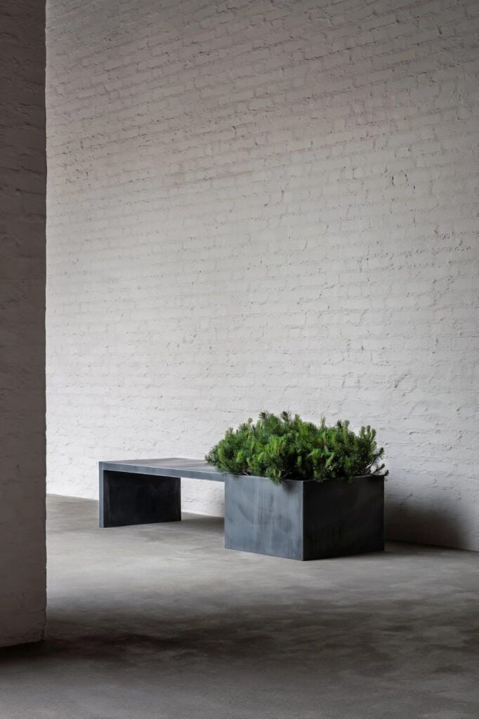 Zinc In Out ist eine Gartenbank mit integriertem Zink-Pflanzgefäss.