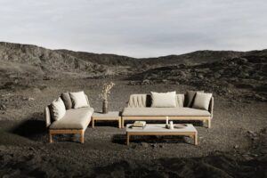 Im Jahr 2020 brachte Royal Botania den Sessel Calypso 55 auf den Markt und hat die Calypso-Kollektion seitdem um die Calypso Lounge erweitert. Die Lounge verfügt über Teakholzgestelle in drei verschiedenen Grössen - ein quadratisches Gestell von 72x72 cm, ein doppelt so grosses Gestell und ein Gestell in dreifacher Länge. Die Lounge bietet ausserdem L- oder U-förmige Rückenlehnen aus Edelstahl, die für zusätzlichen Komfort mit gepolsterten Bezügen ausgestattet werden können. Diese Bezüge lassen sich zum Reinigen und Überwintern einfach per Reissverschluss abnehmen und sind in verschiedenen Farben erhältlich. Für eine natürlichere Optik und Haptik haben wir unser originelles KRISKROS-Webmuster aus synthetischen Outdoor-Fasern in drei verschiedenen Farbtönen entwickelt. Als Alternative zur textilen Rückenlehne kann die Lounge auch mit einer gewebten Rückenlehne ausgestattet werden. Die Möglichkeiten für Arrangements und Ausführungen sind endlos.