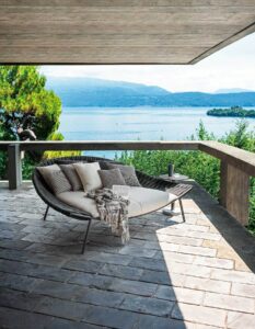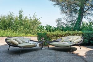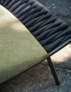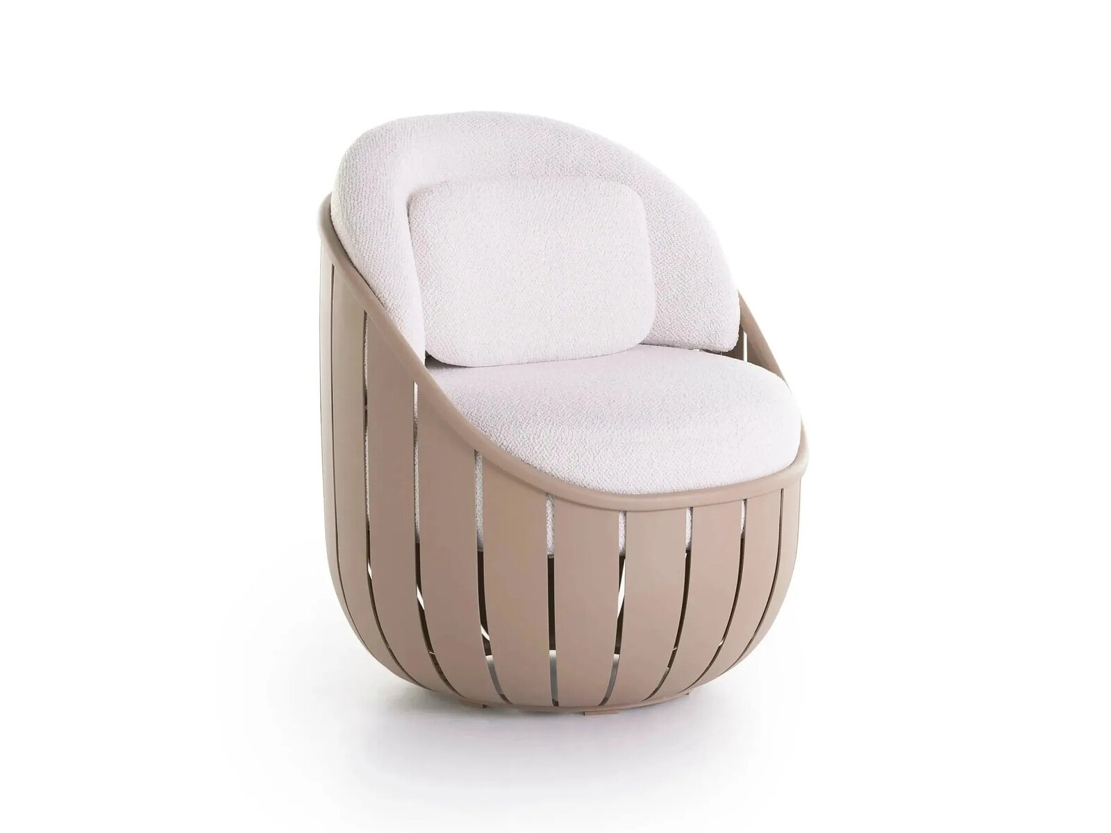 Der Arena Club ist ein Designer-Loungesessel, dessen thermolackierte Aluminiumlamellen einzeln behandelt werden, um ihnen die perfekte Krümmung zu verleihen, so dass eine organische Struktur entsteht, die an eine grosse Umarmung erinnert.