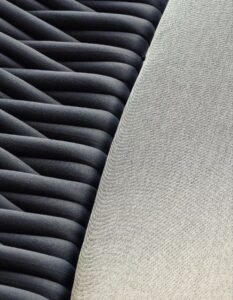 Einerseits erinnern die Elemente und Typen mit ihren robusten, abgerundeten Formen und bearbeiteten Kanten an traditionelle Korbmöbel und Korbgeflechte. Andererseits erinnern die breiten, geschwungenen Lamellen an die für das skandinavische Design typischen Holzfurniere.