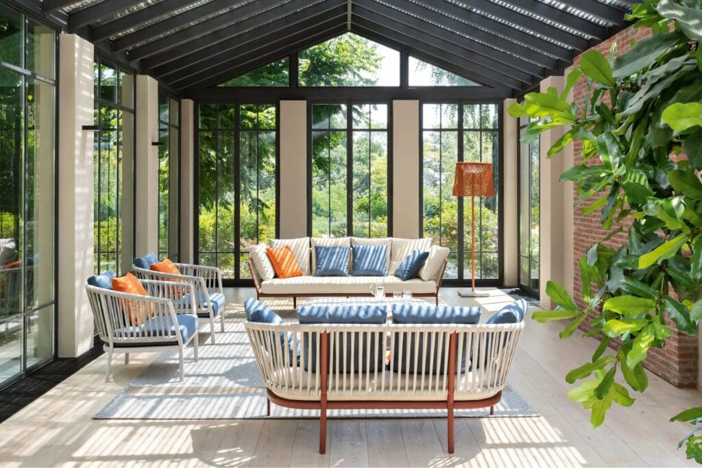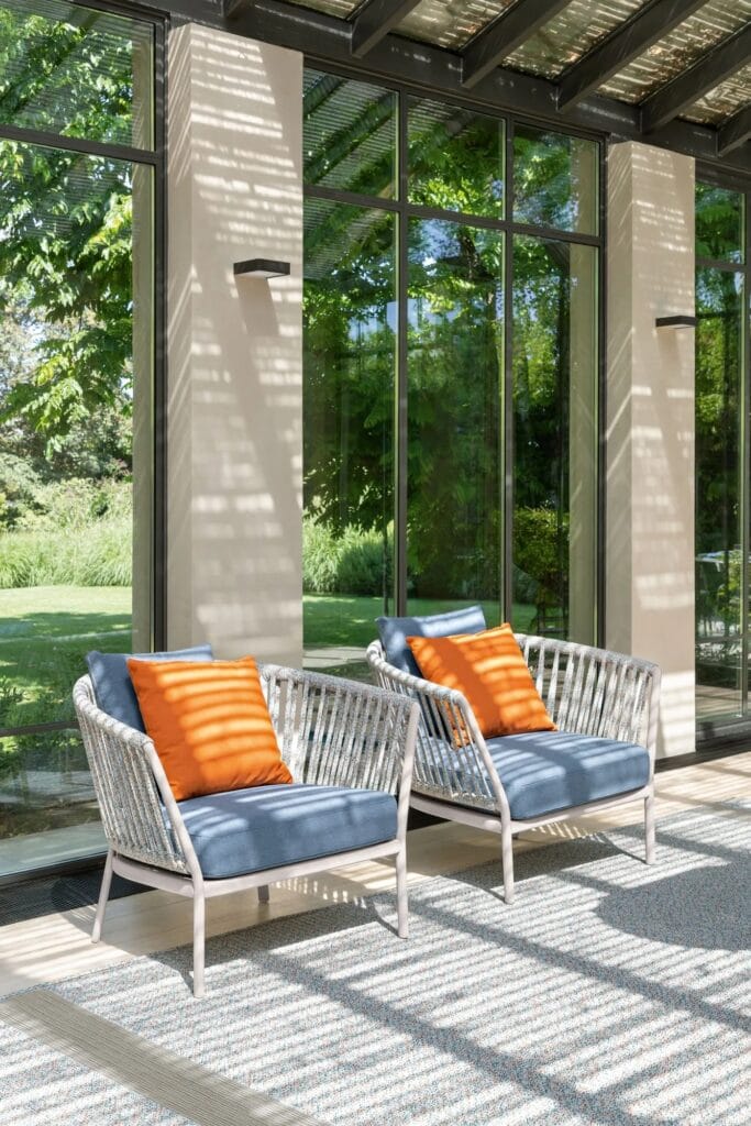 Ria ist eine Serie von Sitzmöbeln mit einem besonders komfortablen und wellnessorientierten Design. Erhältlich in einer Vielzahl von Ausführungen und Grössen, ermöglicht Ria eine maximale Anpassung bei der Zusammenstellung Ihrer Aussenumgebung in verschiedenen Situationen und Jahreszeiten, immer im Namen der Praktikabilität und des Komforts.