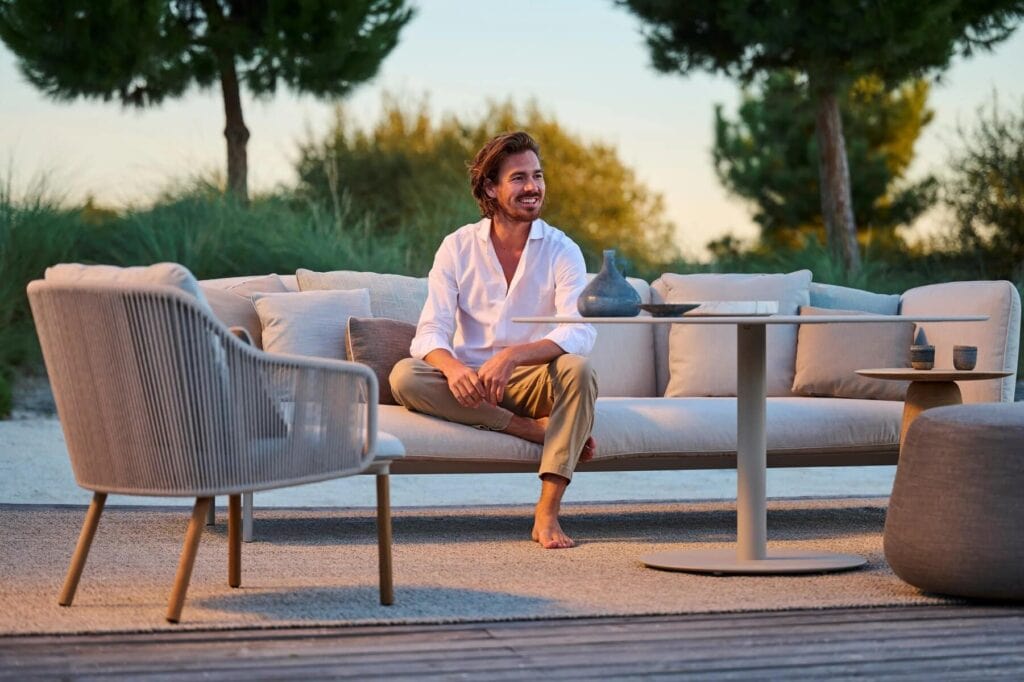 Die Kollektion Senja lädt zum Entspannen ein, indem sie Komfort und Vielseitigkeit miteinander verbindet. Der Sessel verbindet leicht wirkendes Design mit sanfter, körpergerechter Unterstützung durch seine Canax®-Rückenlehne. Die Senja-Liege hat voluminöse Kissen für den absoluten Relax-Faktor und ist mit einem seitlichen Teakholz-Tisch über die gesamte Liegenlänge erhältlich. Sowohl Stuhl als auch Liege sind mit pulverbeschichteten Aluminiumbeinen in Leinen oder Wengé oder in Plantagen-Teakholz erhältlich.
