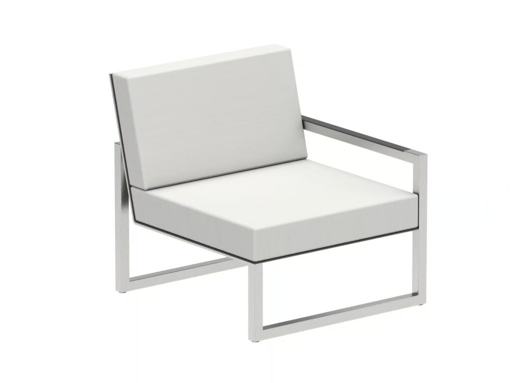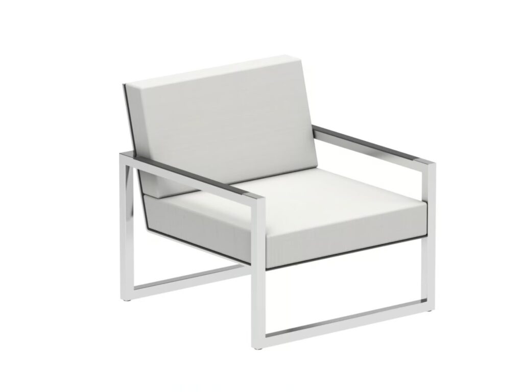 Ninix Lounge ist ein Gartensessel mit einem Gestell aus rostfreiem Stahl und einer Batyline®-Polsterung. Erhältlich in der Version mit zwei Armlehnen oder nur einer.