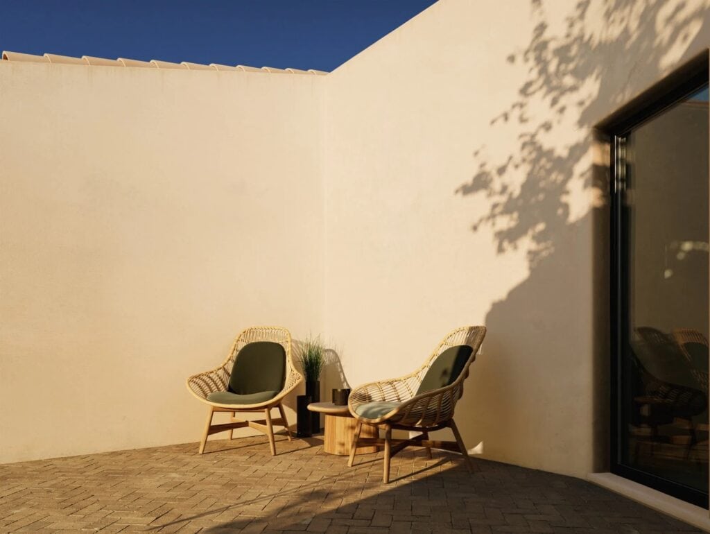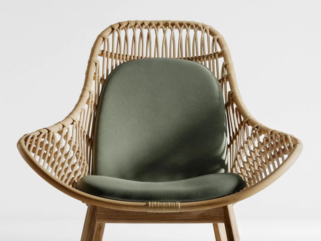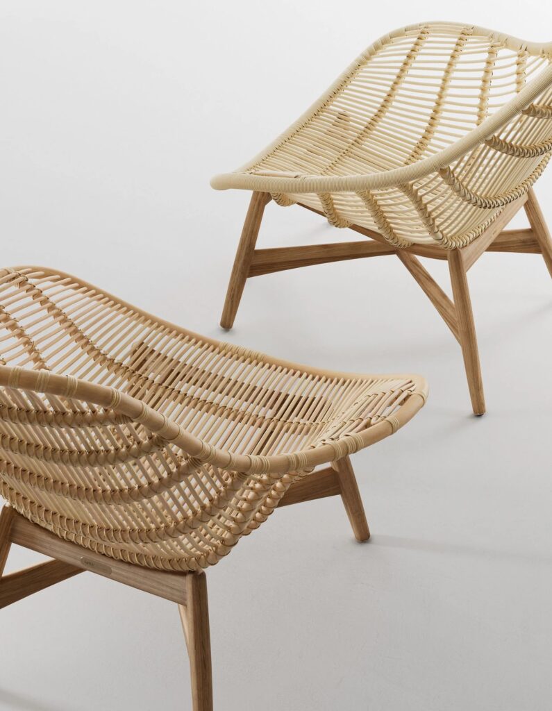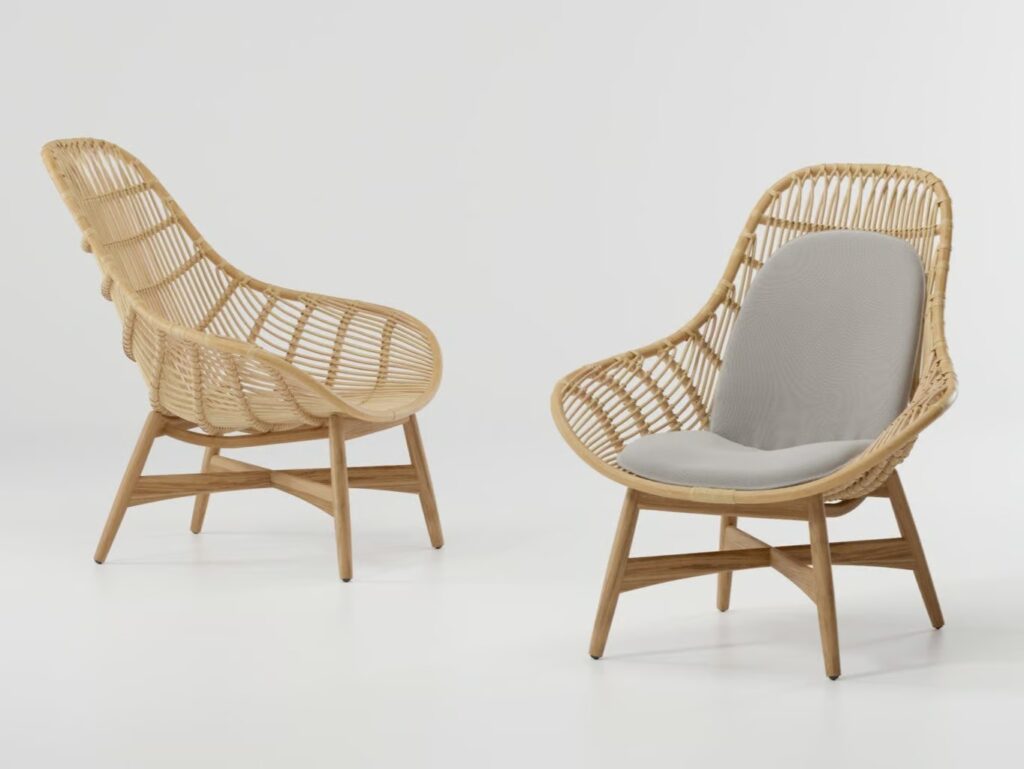 Tou ist ein Rattan-Gartensessel mit Armlehnen.