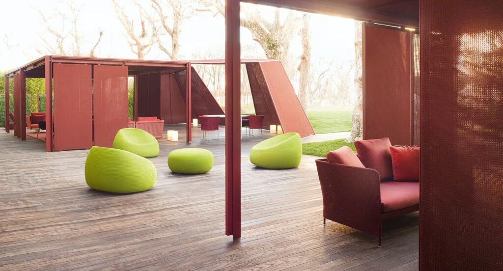 Die Serie Otto umfasst auch ein zweisitziges Sofa und Poufs, die in verschiedenen Formen und Abmessungen erhältlich sind.