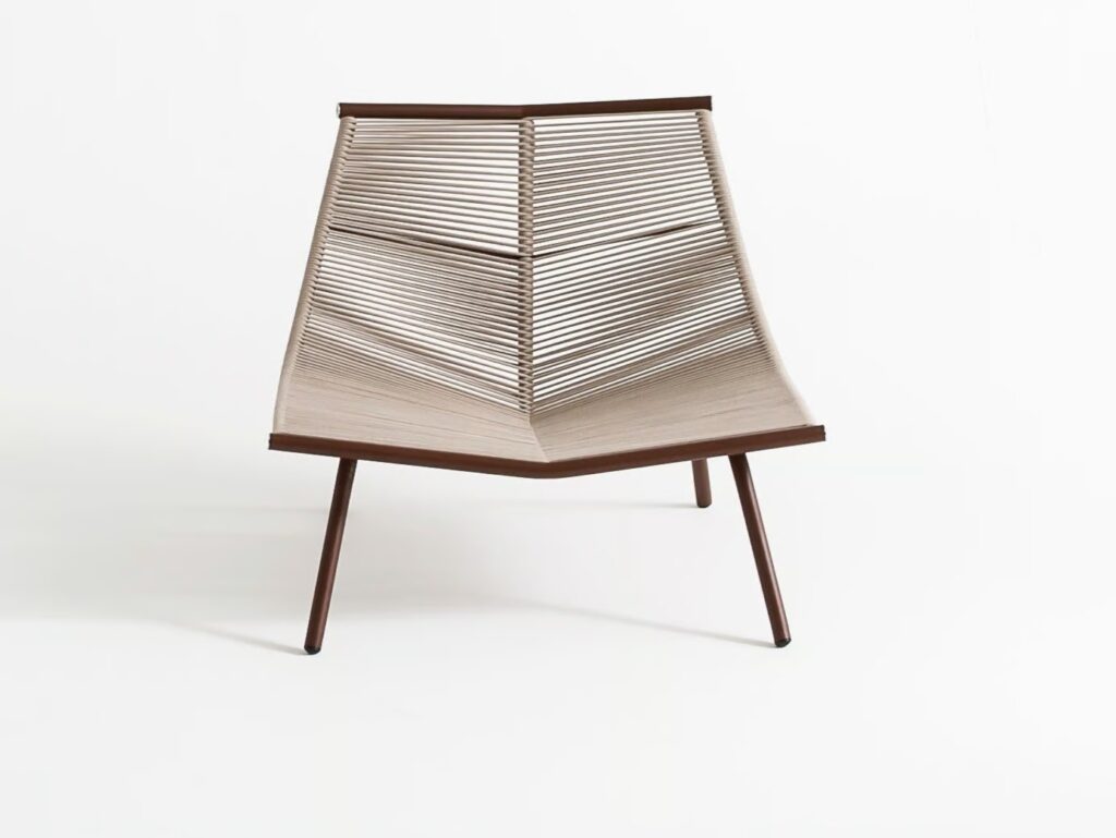 The lounge armchair is available with a high backrest, a low backrest, and in a rocking chair version.