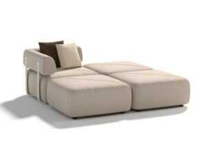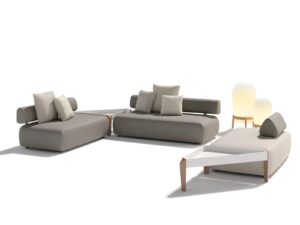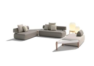 Lorenza Bozzoli, die sich als Modedesignerin einen Namen gemacht hat, bevor sie sich der Möbelbranche zuwandte, liess sich von ihrem textilen Hintergrund inspirieren und arbeitete eng mit italienischen Polstermeistern zusammen, um Module von aussergewöhnlichem Komfort und Qualität zu entwickeln. „Das Fachwissen dieser Handwerksmeister in Kombination mit meiner eigenen Erfahrung in der Modebranche hat zu einem neuen Standard für gepolsterte Aussenmöbel geführt“, sagt sie.