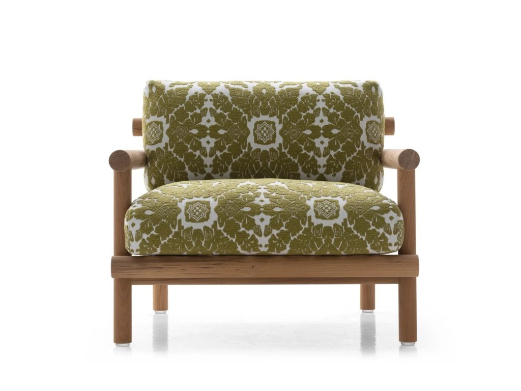 Die minimalistische und innovative Kollektion Ayana ist ein neues Kapitel in der Geschichte, die B&B Italia mit Naoto Fukasawa verbindet. Der Protagonist ist das Holz, das auf ungewöhnliche Weise interpretiert wird, mit einem angenehmen orientalischen Touch. Während die Tiefen und Höhen eine klare Referenz an die südostasiatische Tradition darstellen, erinnert die Rückenlehne an eine schwedische Sprossenwand, ein Trainingsgerät, das zu einem tragenden Element umfunktioniert wurde. Dank dieser Lösung können die Elemente der Ayana-Kollektion in einem 360-Grad-Winkel genossen und geschätzt werden, wobei auf jeder Seite ein neues elegantes Zusammenspiel von Überschneidungen und Proportionen zu entdecken ist. Die zwei- und dreisitzigen Sofas und der Sessel haben Armlehnen in unterschiedlichen Höhen. Die Armlehne des Sessels ist höher, um einen ergonomischeren Sitz zu gewährleisten. Die Armlehne des Sofas, die niedriger ist, kann mit einem Kissen kombiniert werden, das sich leicht befestigen und abnehmen lässt und bei Bedarf ein bequemeres Sitzen ermöglicht. Die Polstermöbel dieser Kollektion zeichnen sich durch individuelle Kissen aus, die alle mit wasserfesten Stoffen bezogen sind. Der warme Minimalismus von Ayana wird durch einen Stuhl, einen Esstisch und einen niedrigen Tisch ergänzt. Der Esszimmerstuhl greift die stilistischen Merkmale der anderen Sitzgelegenheiten auf, um ein perfektes Familiengefühl zu schaffen, mit einer Struktur aus natürlichem Teakholz und zwei großzügig gepolsterten Kissen mit Stoffbezug. Der Tisch besticht durch seine ovale Platte aus Serpentin, einem typischen Stein der Alpen. Die tragende Struktur aus natürlichem Teakholz wirkt leicht, ist aber äußerst robust, wetterfest und trägt die schwere Platte. Auch der Couchtisch hat eine runde Struktur aus natürlichem Teakholz mit einer Platte aus Serpentin. Seine großzügigen Abmessungen ermöglichen es, eine angenehme, gesellige Atmosphäre im Außenbereich zu schaffen. Ayana ist ein Projekt mit einer grünen Seele. Das für die Herstellung der Strukturen verwendete Teakholz ist FSC-zertifiziert (Forest Stewardship Council) und alle Materialien, aus denen die verschiedenen Elemente der Serie bestehen, können am Ende des Lebenszyklus des Produkts getrennt und umweltgerecht entsorgt werden.