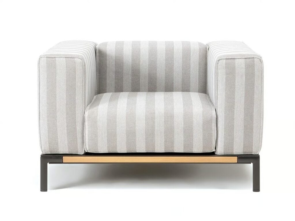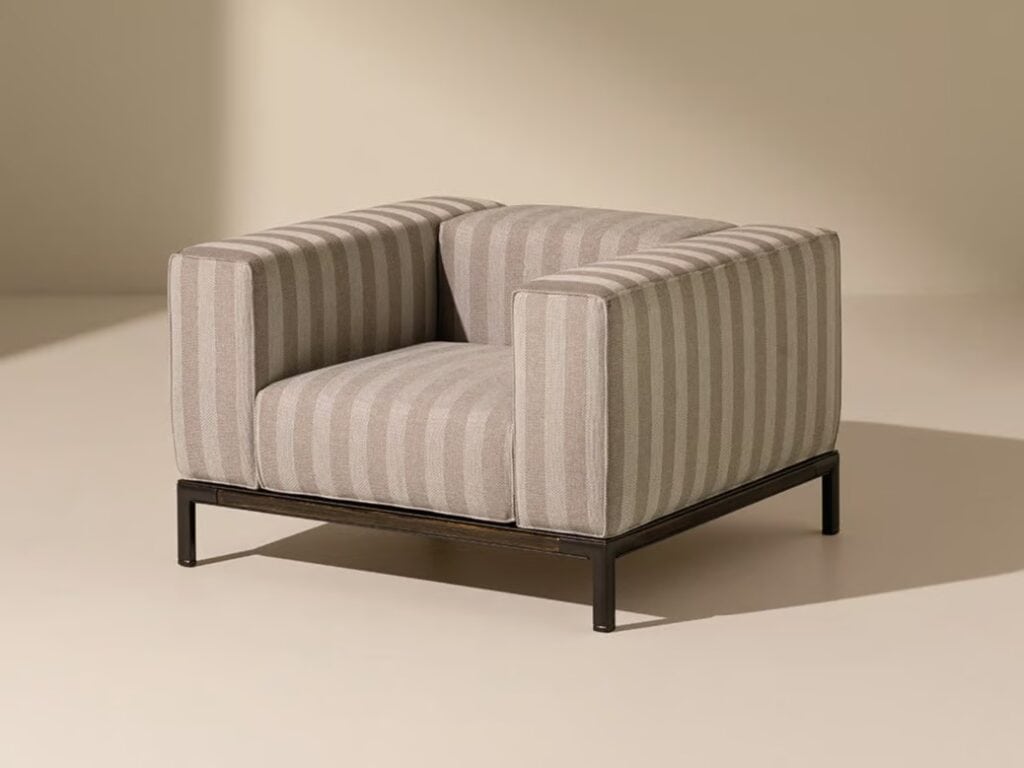 Costiera ist ein Sessel für den Aussenbereich, der sich durch eine voluminöse Polsterung auszeichnet. Die Form der Sitze ist, abgesehen von der Basis, mit einer technischen Polsterung versehen, die die eigentliche Struktur definiert. Diese Kollektion drückt die übliche Sorgfalt aus, die Ethimo den ästhetischen Werten, den technischen Merkmalen und den nachhaltigen Materialien widmet: von wetterfestem Aluminium in den neuen Ausführungen Silver und Carbonio bis zu Mahagoni-, Iroko- oder Accoya-Holz, in natürlicher oder glänzender Ausführung; bis zu Travertino Silver für die Couchtische. Ausserdem sind die Polsterungen versiegelt und vollkommen wasserdicht: eine grundlegende Besonderheit für nautische Möbel.