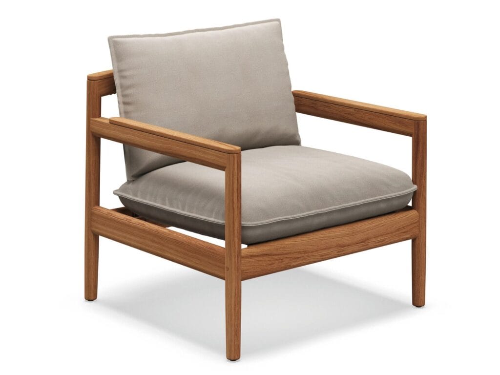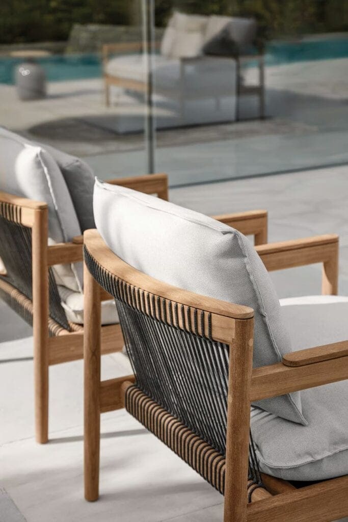 Saranac - Gartensessel aus Stoff und Teakholz mit Armlehnen.