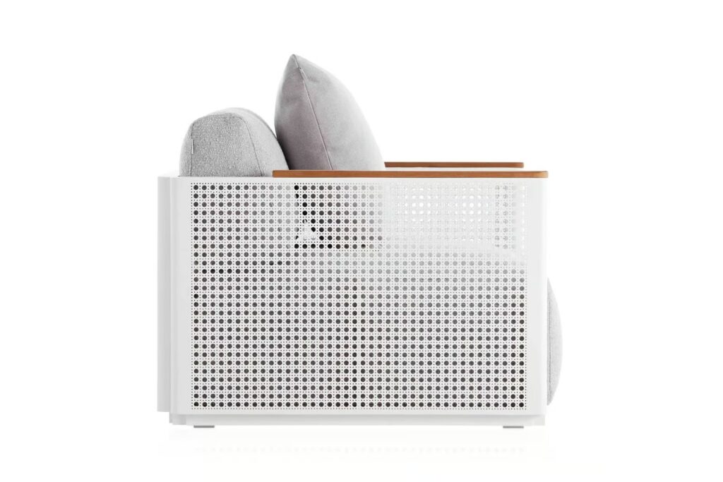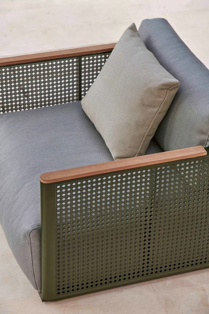 Bosc ist ein Ort auf Menorca, der die Essenz des Mittelmeers sehr gut zusammenfasst. Die traditionelle Komponente ist in unserer Vorstellungswelt immer präsent. Strukturelle Webtechniken unter Verwendung von Pflanzenfasern wie Weidengeflecht sind Teil unserer Kultur, und wir wollten sie durch eine zeitgenössische Abstraktion würdigen, die sie auf Aluminium überträgt und auf subtile, aber präsente Weise in dieses Produkt integriert."