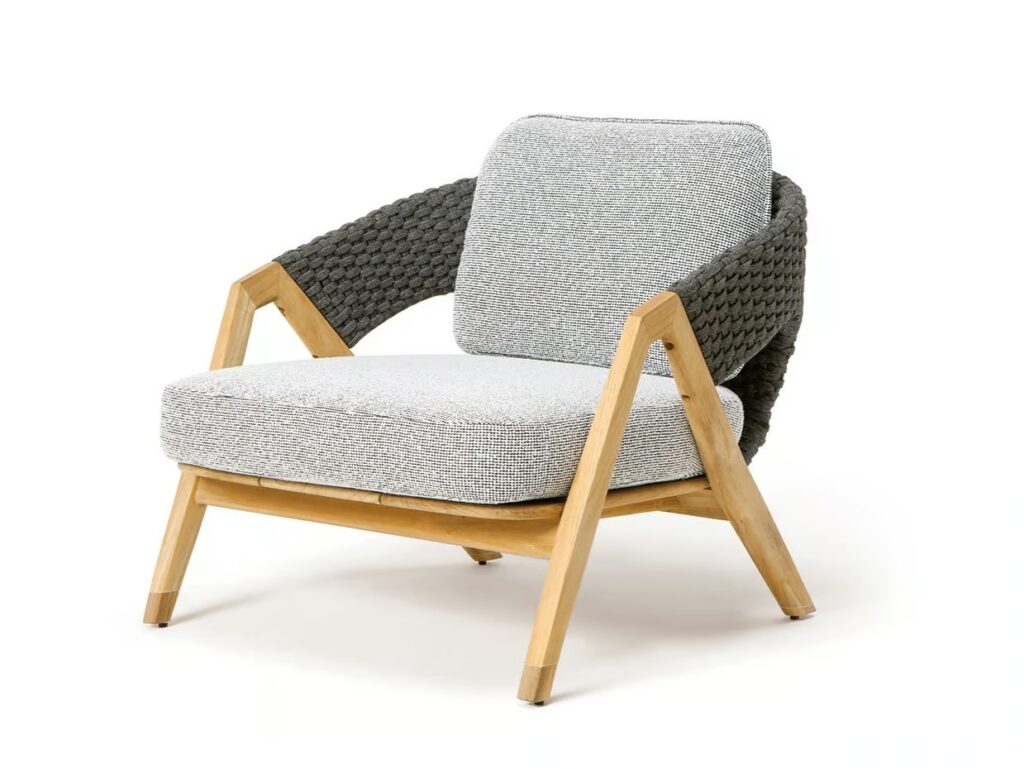 Knit ist ein Sessel aus Teakholz und geflochtenem Seil.