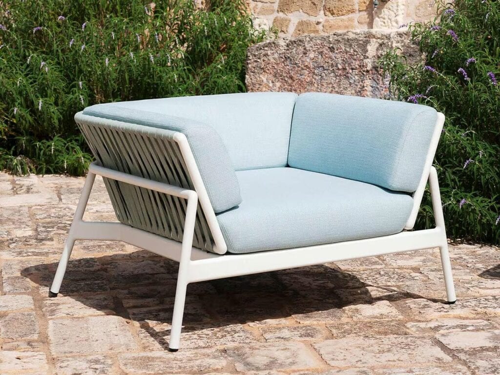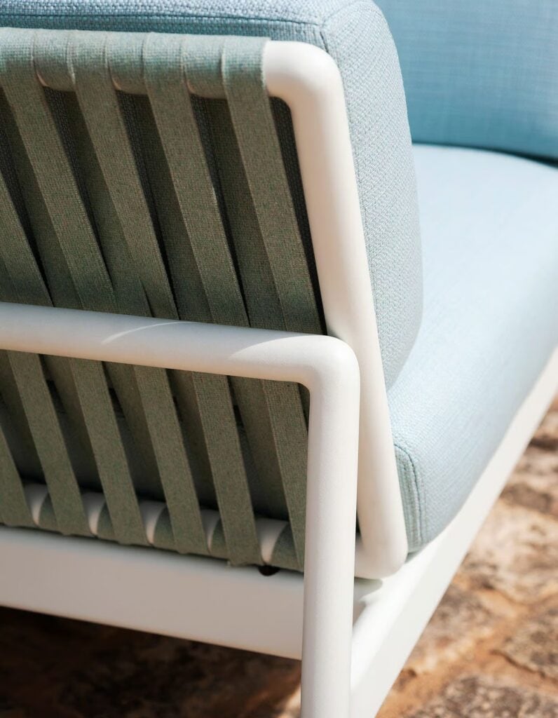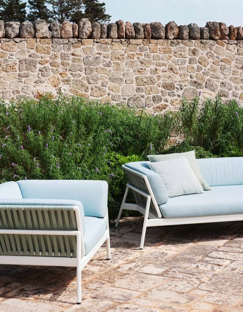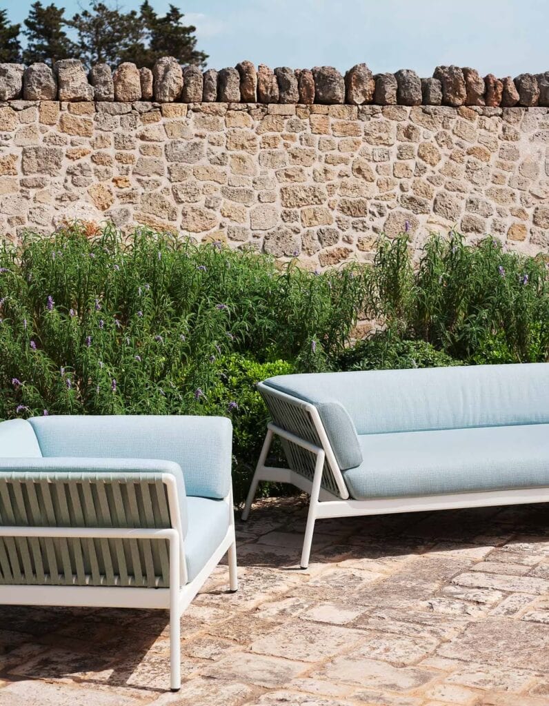 Die Sofas PIPER fügen dem RODA-Vorschlag ein Design von großer Persönlichkeit und Charakter, neue Farben und beispiellose Kombinationen in großartiger Harmonie mit der umgebenden Natur hinzu. Die Struktur des Sofas ist in den Varianten Rauch, Milch und Rost erhältlich, eine raffinierte Endbearbeitung, die an die Empfindungen der Rostfarbe erinnert, gemischt mit der Weichheit der Stoffe und Kissen mit einem Hauch von Indoor. Die Sofas der PIPER-Kollektion zeichnen sich durch die Verwendung von Doppelmaterialien wie Aluminium/Gurt und Aluminium/Batyline aus. Sie bieten die Wahl zwischen einem Set, das ein Sitzkissen und ein Rückenlehnenkissen umfasst, und einem Set mit umhüllenden Kissen, die die gesamte Struktur einnehmen. Diese Sofas sind ideale Outdoor-Accessoires, die maximale Freiheit beim Genießen und Nutzen im Freien ermöglichen.