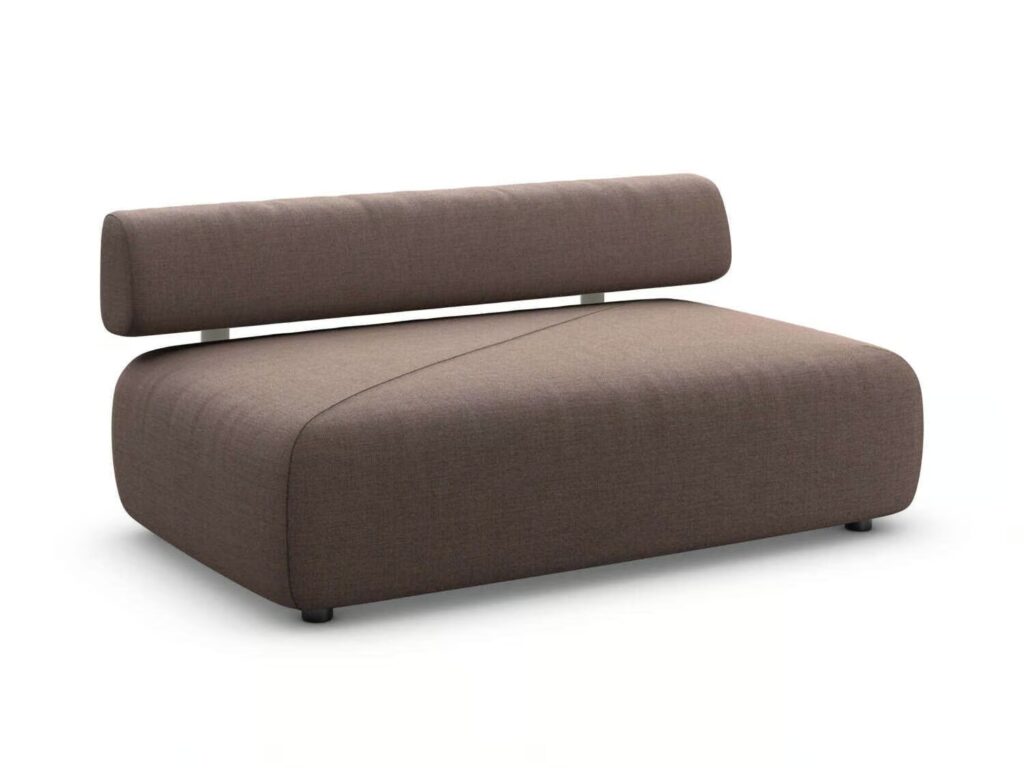 Zu den charakteristischen Merkmalen von BRIXX gehört eine diagonale Rille, die quer über den Stoff jedes Moduls verläuft und Dreiecke in das geradlinige Design einführt. Die Rille entsteht durch das Zusammennähen von zwei Stoffstücken mit einem dritten darunter, wobei eine kleine Lücke dazwischen bleibt. Durch die Kombination von Modulen, Rückenlehnen und Kissen entstehen abstrakte geometrische Landschaften, die der Benutzer selbst gestalten kann. Module mit und ohne feste Rückenlehne lassen sich perfekt miteinander kombinieren.