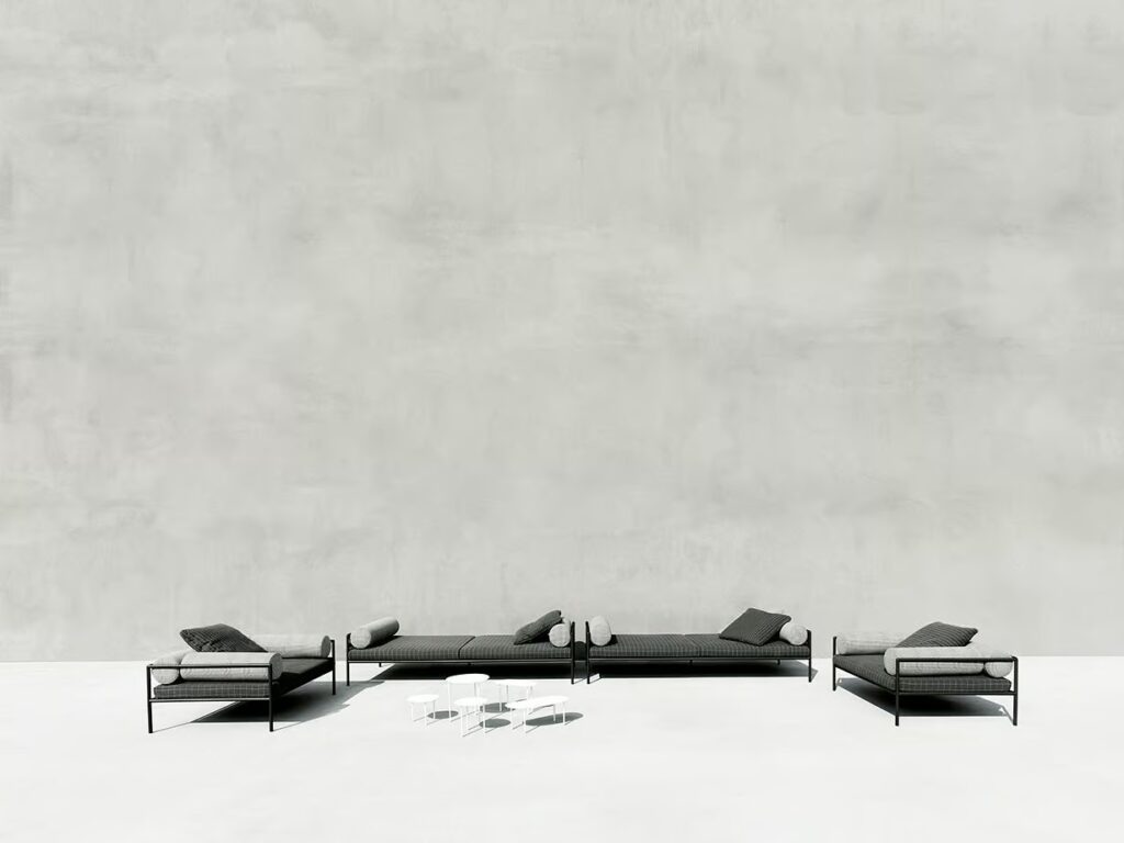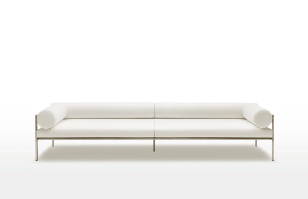 AGRA ist ein Outdoor-Sofa, sowohl in der "Light"-Version - nur Struktur - als auch mit Geflecht aus den in der Kollektion verfügbaren Materialien.