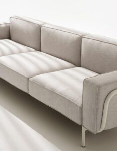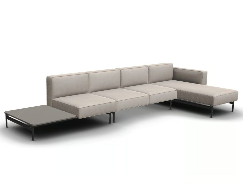 Das geradlinige Design und die erweiterbare Modularität – die den Namen der Kollektion inspiriert haben – unterstützen die Flexibilität eines funktionalen Systems bestehend aus Ein-, Zwei- und Dreisitzer-Elementen mit und ohne Armlehnen, einer Chaiselongue und einem Eckmodul, das seinen Platz in der komplexeste Konfigurationen findet. Außerdem gibt es ein Abschlusselement, das am Ende des Sofas platziert werden kann, und zwei Modelle von Couchtischen, rund und rechteckig, die das Ganze vervollständigen, indem sie sich harmonisch an den Raum anpassen.