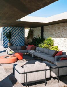 Estendo ist ein modulare Outdoor-Sofa mit einem Gestell aus Aluminium. Der von Luca Pevere für RODA entworfene Sessel ist ein Produkt Made in Italy von großem Komfort und Eleganz, das sich im Raum mit extremer Harmonie entfaltet.