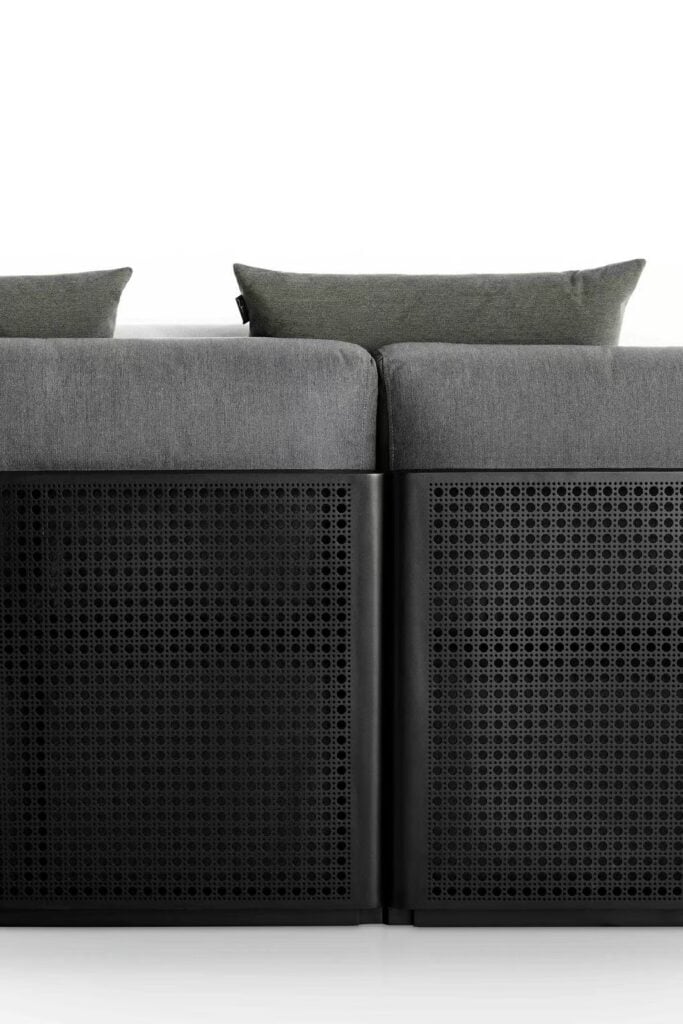 BOSC 4. Modularer Gartensofa aus Stoff und Thermolackiertem Aluminium.