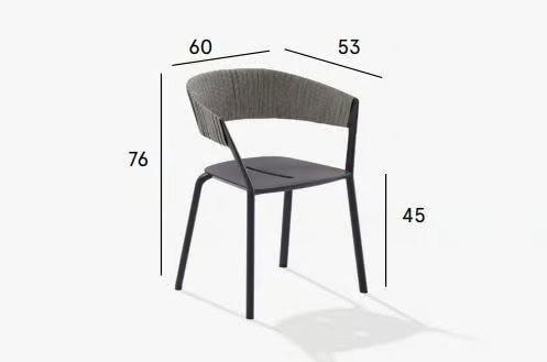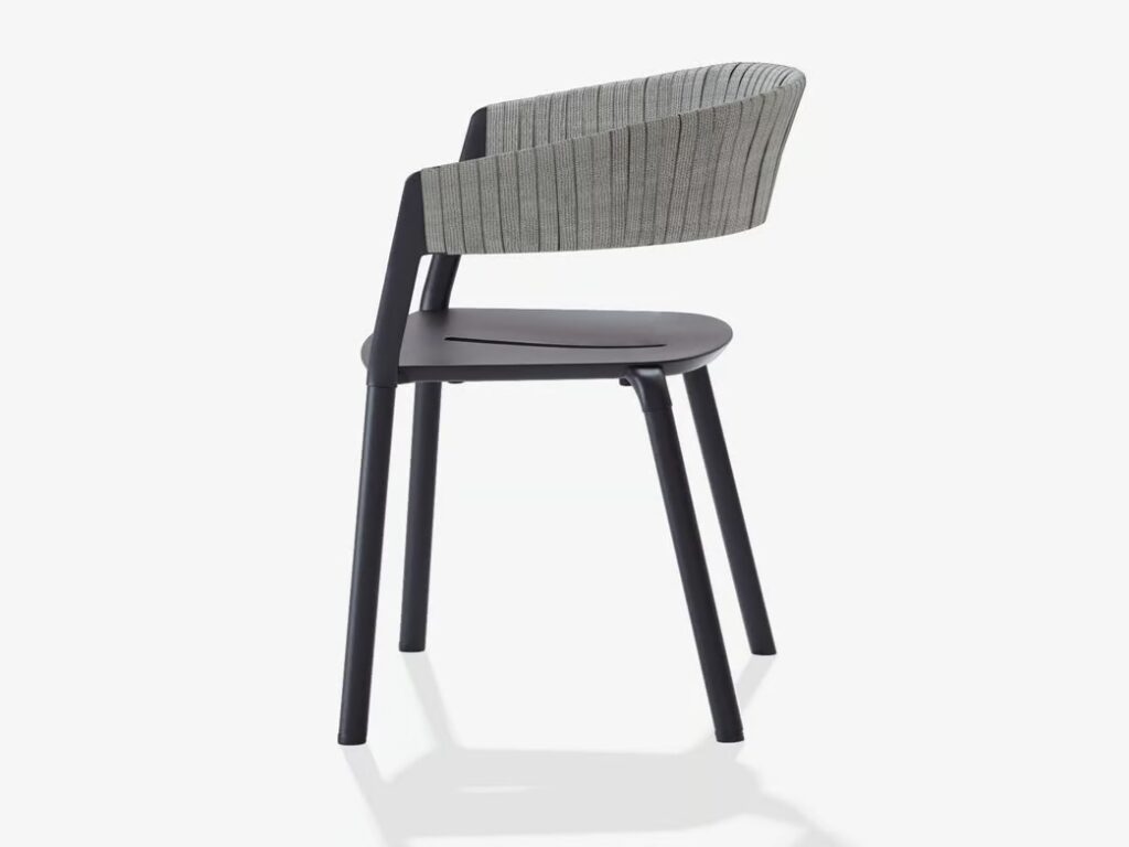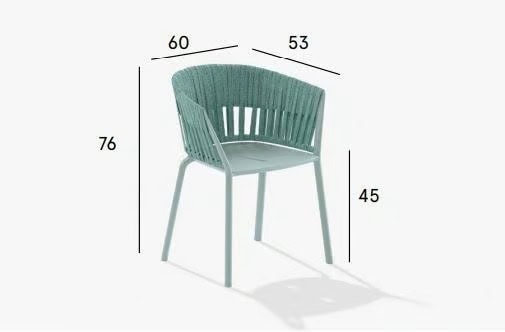Ria ist ein Gartenstuhl aus lackiertem Aluminium mit Vollgeflecht und Sitzkissen aus Stoff.