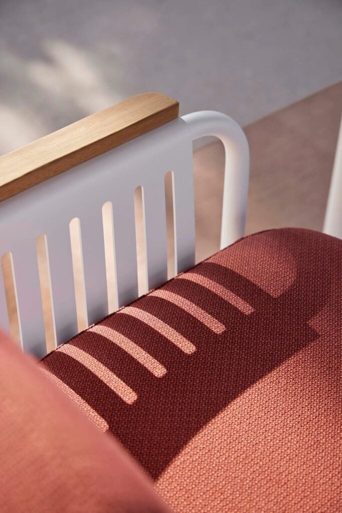 CAPA besteht aus Sitzen und Tischen mit einer Struktur aus thermolackiertem Aluminium in Kombination mit einer geformten Aluminiumplatte mit einfachen Stäben und gebogenen Kanten. Die Tische wiederum haben unterschiedliche Designs und Oberflächen aus Porzellan. "Wir haben sehr klare Entwürfe gemacht, die der Benutzer durch die Wahl des Stoffes und der Oberfläche individuell gestalten kann", fügt Rose hinzu.