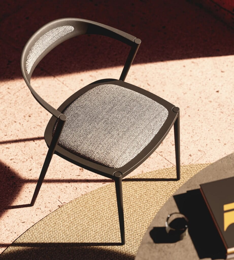 Styletto- Stuhl. Der Name nimmt Bezug auf die Eleganz von hochhackigen Stilettos und den kühnen, stilvollen Look des Rahmens. Mit dem Styletto 55 haben Sie zwei Stühle in einem. In der Winterzeit begegnet er den Herausforderungen des Wetters als ein Stuhl aus 100% Aluminium, während seine fesselnden ergonomischen Kurven mehr Komfort bieten, als Sie erwarten würden. Wenn die Frühlingszeit anbricht und die Sonnenstrahlen die Farbenpracht der Natur zum Vorschein bringen, passt sich Ihr Styletto-Stuhl diesem Wandel an. Sie müssen lediglich die Mittelplatte der Sitzfläche herausnehmen und den Raum mit einem bequemen, farbenfrohen und schnell trocknenden Sitzkissen füllen. Nun füllen Sie das ‘Fenster’ in der Rückenlehne mit einer weichen Polsterung und Ihr Styletto wird damit nicht nur noch komfortabler, sondern wird auch optisch und stilistisch aufgewertet.