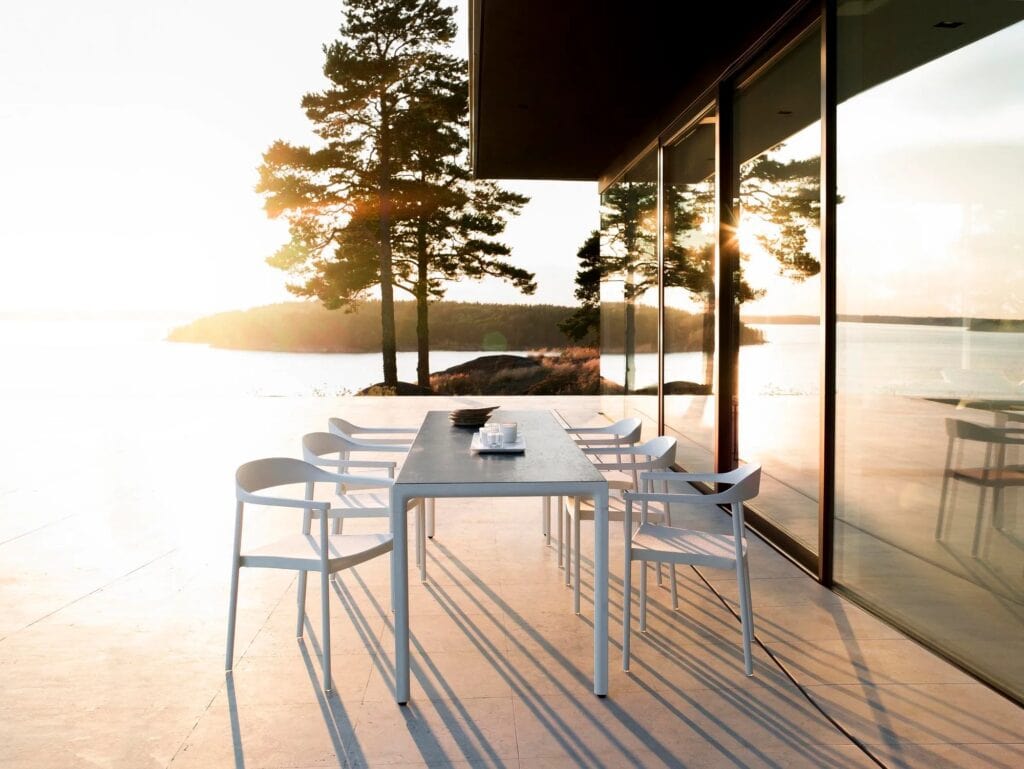Die Illum Kollektion ist die Übersetzung von klassischen Skandinavischen Entwürfen, hergestellt aus Materialien allen Witterungsbedingungen standhalten. Als Hauptmaterial wurde Aluminium verwendet als Alternative zu Holz, mit sanftem Übergang von klaren hinzu weichen Linien.