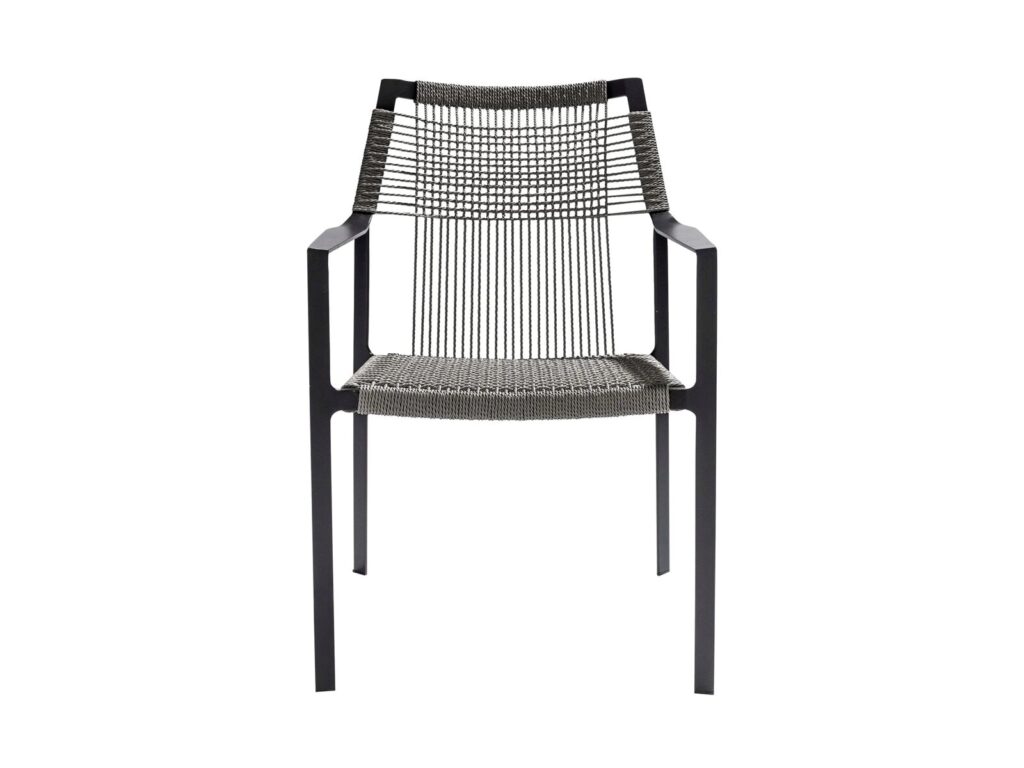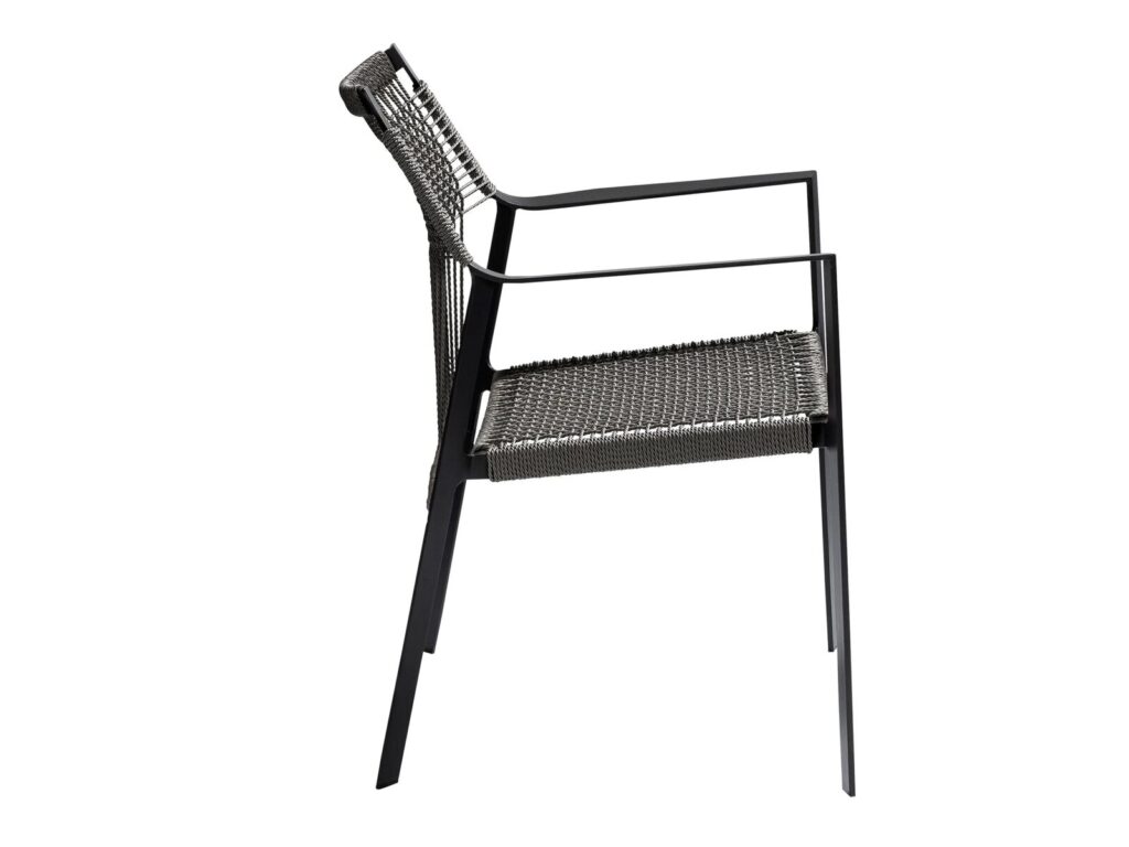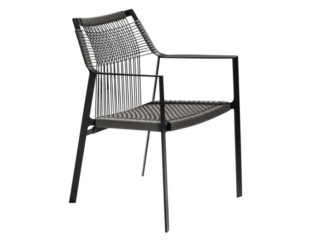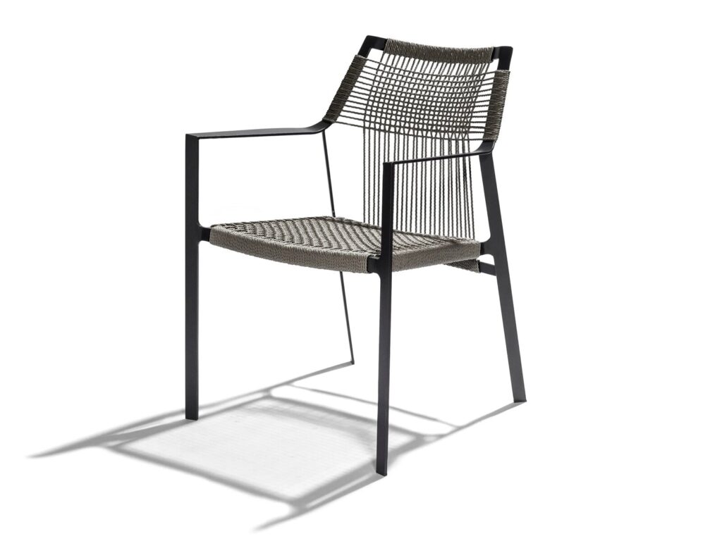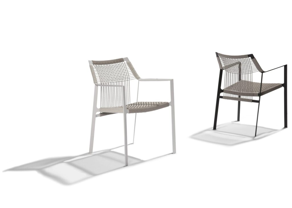 Die schlanken Lehnen folgen den Konturen des menschlichen Arms in einer bewillkommnenden Geste. Das offene Gewebe von Canax®, einer Kombination aus PVC und Hanf, ist vertikal und horizontal gekreuzt und verleiht dem Sitz und der Lehne Form und Struktur. Das geschmeidige Seilgitter gibt leicht nach für besonderen Sitzkomfort. Der Stuhl lässt sich vorzüglich mit anderen Entwürfen aus der Kollektion von Tribù kombinieren.