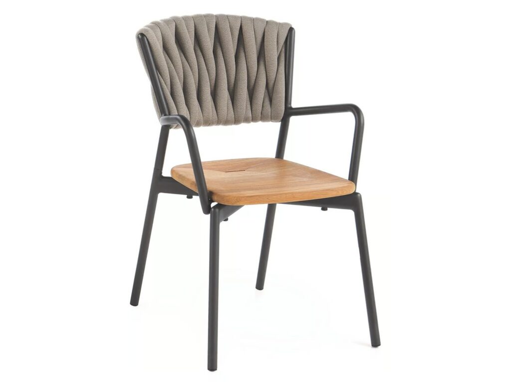 PIPER bietet eine Vielzahl an stapelbaren Outdoor Stühlen, mit und ohne Armlehnen, und Esstischstühle, die sich beim PIPER 221 Stuhl durch ein zur Verflechtung aus gepolsterten Schlauchgurten der Rückenlehnenverkleidung passendes Aluminiumrohrgestell auszeichnen. Die Kombination der Materialien kann anhand der Sitzfläche erweitert werden: weicher aus Teak oder technischer aus Polyurethanharz, Farbe Mole. Das Sitzkissen, das über einen Befestigungsdorn verfügt, der in den Schlitz Wasserablaufschlitz auf der Sitzfläche gesteckt werden kann, ist in den Outdoor Geweben der umfangreichen RODA Palette erhältlich: ein weiterer Farbtupfer für neue und unvorhersehbare Kombinationen. Durch die angebotenen Bezugvarianten eignet sich der PIPER Stuhl gut zur Kombination mit den Gartentischen aus Holz oder Metall; die Stapelfähigkeit und die einfache Pflege machen aus ihm ein Produkt, das sich für die Outdoor Bereiche von Restaurants und Hotels eignet.
