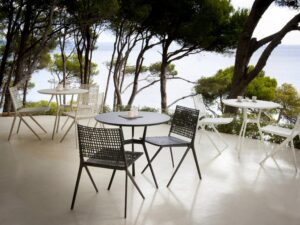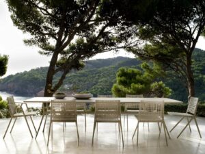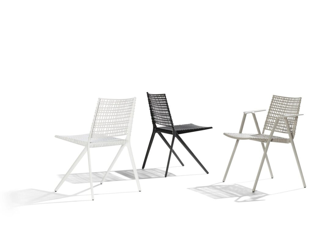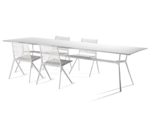 Das Spanische Designertrio Lievore Altherr Molina fand seine Inspiration für die Branch Kollektion in den Zweigen eines Baumes, fließend und organisch. Das Ergebnis ist eine organische Form der Möbel, die perfekt mit der Natur korrespondieren und auch dem Wetter optimal trotzen. Designer Manel Molina: “Mit Branch möchten wir die emotionale Bindung mit der Natur verstärken. Ein Gefühl von Respekt und Faszination für die Natur, ein Platz zum Genießen, in der Nähe und unkompliziert.“ Hinter dem zierlichen Charme verbirgt sich ein ausgeklügeltes Design für ausgezeichnete Sitzbequemheit und eine vernünftige Wahl der Grundstoffe. Das Gestell aus Gussaluminium wird kombiniert mit einer Sitz- und Rückenlehne aus wiederverwendbarem Kunststoff, mit Glasfaser verstärkt. Beide Grundstoffe sind leicht, aber robust, einfach in der Pflege und wetterfest. Branch schmückt Ihre Terrasse in weiß oder in zwei erdfarbigen Tönen, die man gut miteinander kombinieren kann: das leichte Linen und das dunkle Wengé. Die Kollektion umfasst einen stapelbaren Sidechair, einen niedrigen Easychair, einen Lounger und mehrere Tische – von kleinen runden und viereckigen Tischen bis hin zum großen Tisch mit einer Länge von 3 Metern.