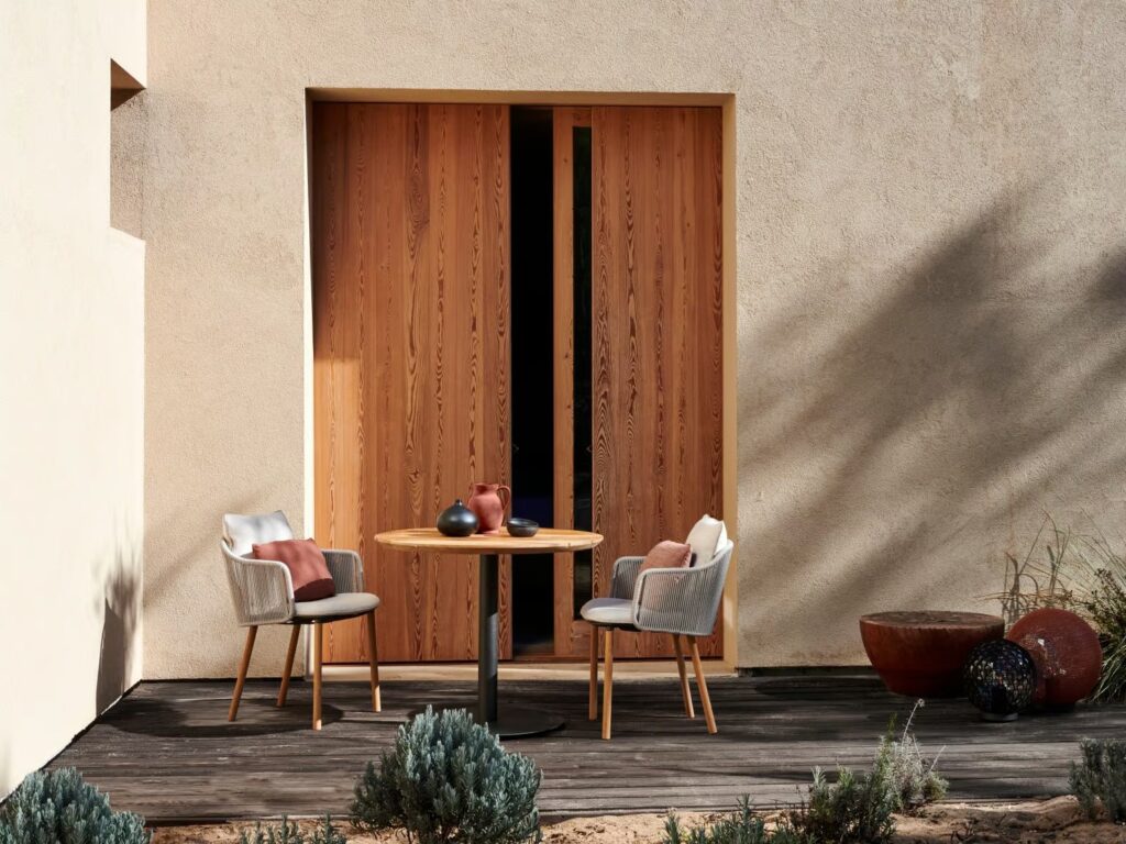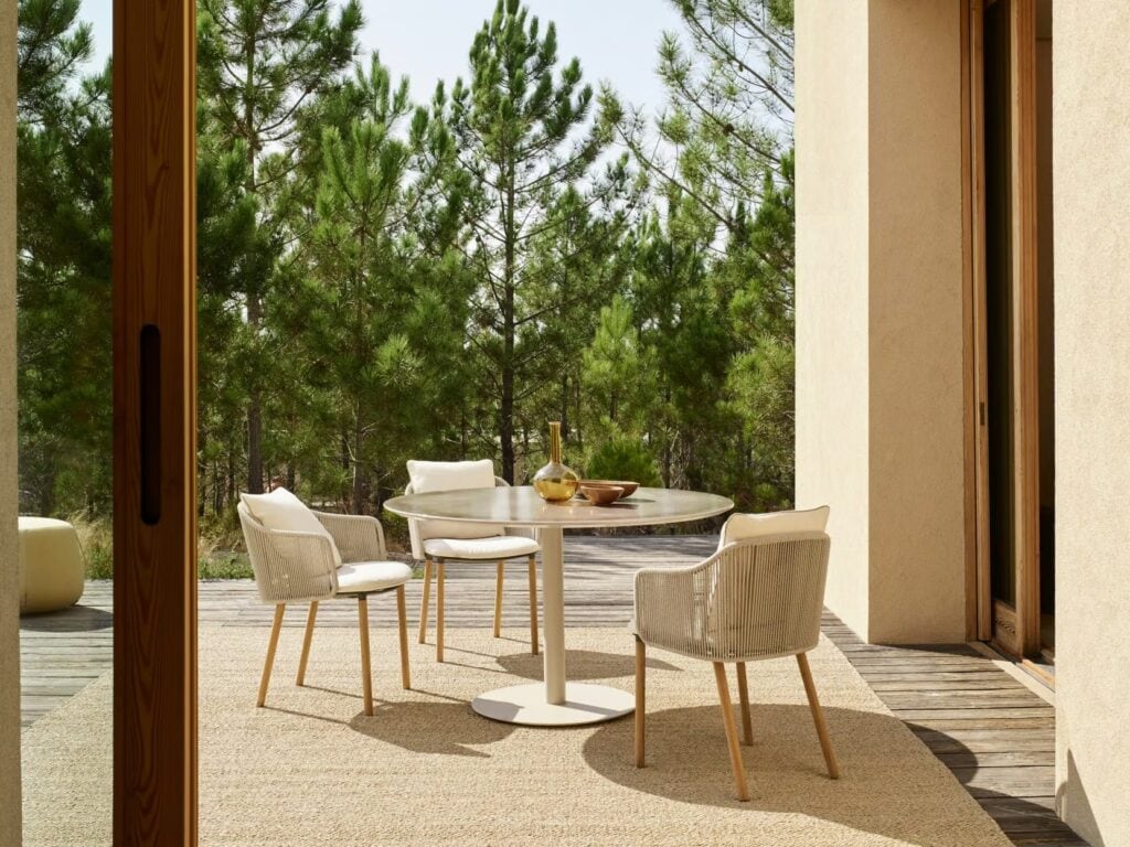 Die Kollektion Senja lädt zum Entspannen ein, indem sie Komfort und Vielseitigkeit miteinander verbindet. Der Sessel verbindet leicht wirkendes Design mit sanfter, körpergerechter Unterstützung durch seine Canax®-Rückenlehne. Die Senja-Liege hat voluminöse Kissen für den absoluten Relax-Faktor und ist mit einem seitlichen Teakholz-Tisch über die gesamte Liegenlänge erhältlich. Sowohl Stuhl als auch Liege sind mit pulverbeschichteten Aluminiumbeinen in Leinen oder Wengé oder in Plantagen-Teakholz erhältlich.